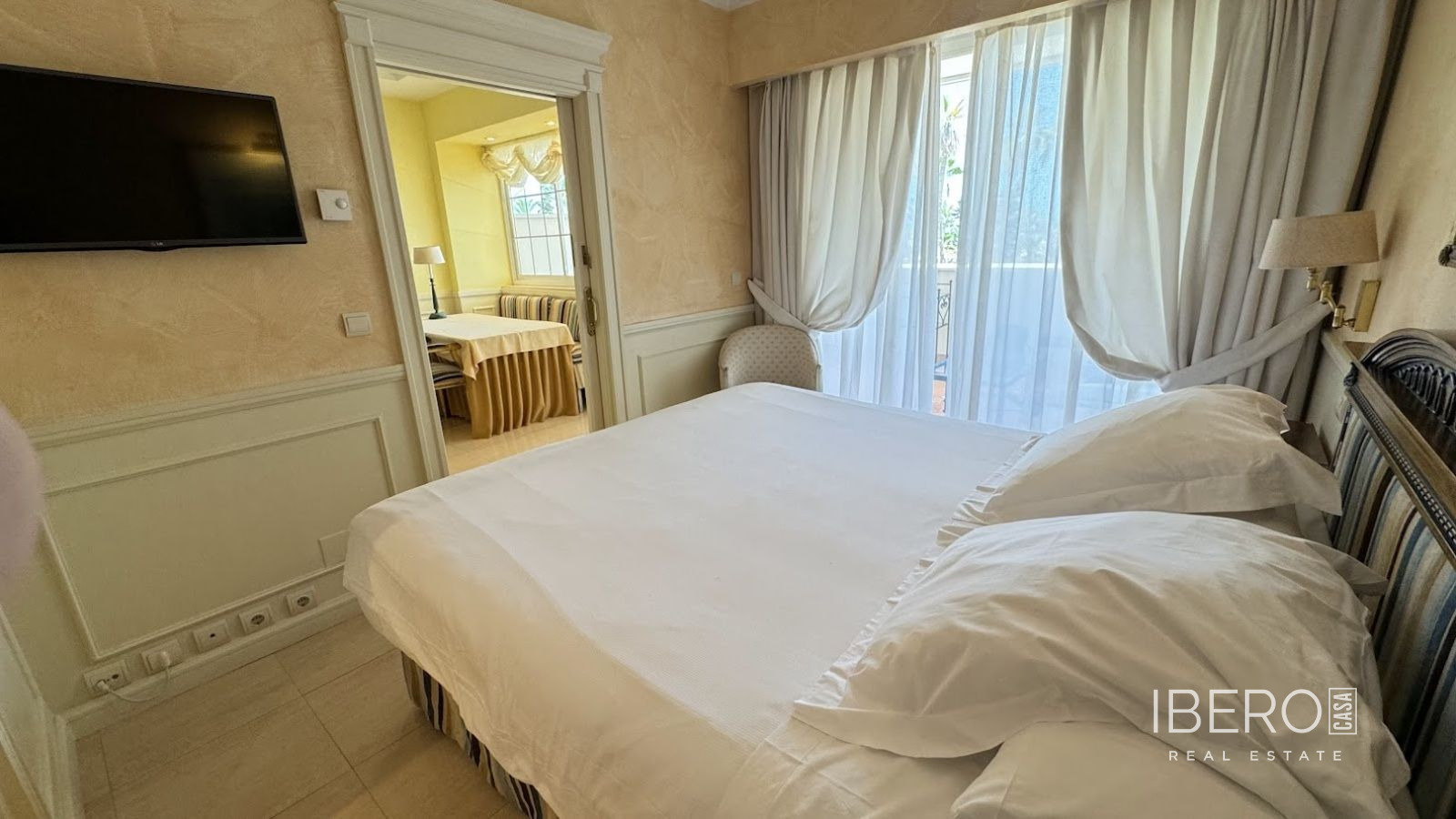 Představujeme vám jedinečnou příležitost získat elegantní apartmán s jednou ložnicí v prestižním hotelu Guadalpin na slavné Zlaté míli v Marbelle. Tato nádherná nemovitost je ideální pro ty, kteří hledají kombinaci komfortu, stylu a pohodlí. Hlavní vlastnosti apartmánu: Hlavní rysy: Lokalita: Poloha: Hotel Guadalpin, Zlatá míle, Marbella Ložnice: 1 prostorná ložnice s vestavěnými skříněmi Koupelny: 1 moderní koupelna s vysoce kvalitními povrchovými úpravami Obývací pokoj: Obývací pokoj: světlý a prostorný obývací pokoj se vstupem na terasu Kuchyně: 2 ložnice s terasou a terasou s výhledem na moře: Plně vybavená kuchyň s moderními spotřebiči Terasa: Útulná terasa s panoramatickým výhledem do okolí Výhody a vybavení: Vynikající poloha: Hotel Guadalpin se nachází na Zlaté míli, jedné z nejprestižnějších částí Marbelly, v blízkosti nejlepších restaurací, obchodů a pláží. Hotelové služby: Hotel Guadalpin je vybaven moderním nábytkem, který je vhodný pro všechny hosty: Hotel Guadalpin: 24hodinová služba, ostraha, bazén a restaurace jsou vám k dispozici. Bezpečnost: Hotel je vybaven kamerovým systémem, který zajišťuje bezpečnost: O váš klid a bezpečí se postará kamerový systém a 24hodinová ostraha. Tento apartmán je dokonalou kombinací luxusu a pohodlí a nabízí vše, co potřebujete, abyste si mohli užívat života na pobřeží Costa del Sol. Nenechte si ujít příležitost vlastnit tuto velkolepou nemovitost!
