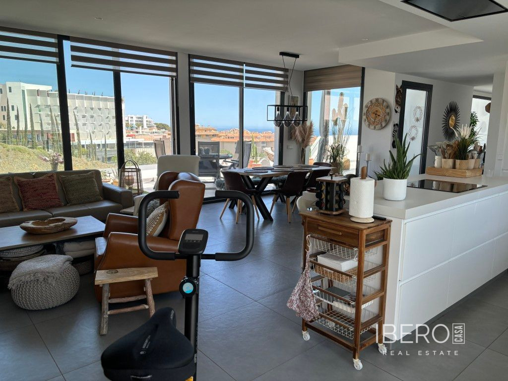 Fantastický penthouse ve vyhledávané oblasti Higueron West. Byt má velké, krásné pokoje a nabízí super prostorný obývací pokoj s krásnou otevřenou kuchyní, ze které je nádherný výhled ze všech stran. Kromě toho jsou na obou stranách terasy se vstupem z obývacího pokoje a kuchyně. Vedle kuchyně se nachází také uzavřená prádelna. Velká hlavní ložnice s krásnou moderní koupelnou a spoustou skříní. Druhá ložnice je také prostorná a má vlastní koupelnu. Dále jsou k dispozici dvě parkovací místa pod budovou hned vedle vchodu a pěkný sklad. Sdružení majitelů domů nabízí nejkrásnější prostory a bazény. V těsné blízkosti se nachází velké oblíbené sportovní centrum, které nabízí padel tenis, fitness a mnoho dalšího. Skutečně byt, který se musí vidět