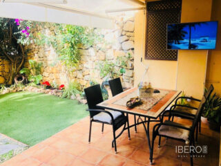 KRÁSNÝ PŘÍZEMNÍ BYT V PĚKNÉ URBANIZACI V CALAHONDA Tento krásný byt se skládá ze 2 dvoulůžkových pokojů (jeden z nich s krbem a vede do zahrady). Koupelna, kompletně zrekonstruovaná. Obývací pokoj, s rozkládací pohovkou, nábytkem na míru a krbem. Plně vybavená otevřená kuchyň, nedávno zrekonstruovaná, s kvalitními spotřebiči. Klimatizace. Pěkná krytá terasa, s pěkným nábytkem, grilem a vířivkou. Ve skvělé lokalitě, jen 5 minut chůze od moře. Soukromé parkoviště. Společný bazén obklopený krásnou udržovanou zahradou. Klidná urbanizace. Mijas Costa je úsek pobřeží, který leží mezi hranicemi měst Fuengirola a Marbella. Většina tohoto úseku byla urbanizována a zahrnuje letoviska El Faro, El Chaperral, La Cala de Mijas, Riviera del Sol, Calahonda a Sitio de Calahonda. Sitio de Calahonda je největší urbanizací v této části pobřeží a pláž Calahonda je největší pláží v obci Mijas o délce 4,5 km. Všechna tato letoviska spojuje pobřežní autobusová linka a v Mijas Costa se nachází 12 golfových hřišť. Na hranici s Fuengirolou leží nákupní centrum Miramar a vodní park.