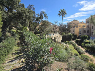 Tento dobře udržovaný zahradní apartmán v centru Elvirie se navíc nachází ve vyhledávané luxusní nejprodávanější lokalitě, která patří k nejžádanějším v celé oblasti. Tento krásný, slunný, světlý, soukromý a prostorný rohový zahradní apartmán, který se nachází v blízkosti obchodů a veškeré občanské vybavenosti, golfových hřišť a v pěší vzdálenosti od pláže, má vše, co můžete od dokonalého rekreačního domu ve Španělsku očekávat. Postaven podle vysokých standardů, s mramorovými podlahami v celém bytě, centrální klimatizací, velkými ložnicemi, velkou kuchyní, koupelnami a obývacím pokojem, je dokonale tvarovaný se slunnou přední terasou, obklopenou zelení a při večerním stolování "al fresco" můžete zachytit trochu výhledu na moře. Dlouholetá komunita se rozprostírá s prastarými palmami a korkovníky, je zde několik bazénů, do kterých si můžete skočit, a jeden z největších je velmi blízko. Hacienda je úžasné místo pro celoroční život nebo jen pro kratší období v roce, kdy můžete odjet - v každém případě je kousek ráje na Zemi v ceně!
