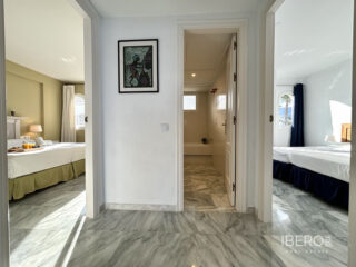 Tento úžasný luxusní mezonetový penthouse se nachází v krásné oblasti Arroyo Vaquero, Estepona West, Estepona, Malaga. Tato nemovitost se nachází v první linii u pláže a nabízí úchvatný výhled na moře a přímý přístup na pláž. Tento prostorný penthouse o zastavěné ploše 185 m² zahrnuje 2 ložnice a 2 koupelny. Interiér penthousu se rozkládá na ploše 115 m² a nabízí otevřený a světlý obývací pokoj, jídelnu a plně vybavenou kuchyň s moderními spotřebiči. Mramorové podlahy a dvojitá okna dodávají nemovitosti elegantní nádech. Penthouse se může pochlubit také soukromou terasou o rozloze 70 m², která je ideální pro venkovní stolování, zábavu a užívání si nádherného výhledu na moře. Mezi další prvky tohoto luxusního penthousu patří klimatizace, vestavěné skříně, šatna a střešní terasa. Společné prostory nemovitosti zahrnují bazén, zahradu a garáž. K další občanské vybavenosti v okolí patří obchody, restaurace a školy, což z této lokality činí ideální místo pro relaxaci i každodenní pohodlí. Nemovitost je ve výborném stavu a je k dispozici s volitelným nábytkem. Domácí zvířata jsou povolena a připojení k internetu je k dispozici prostřednictvím Wi-Fi i optických vláken. Tento mezonetový penthouse v Arroyo Vaquero v Esteponě je díky své vynikající poloze u pláže, luxusním prvkům a nádhernému výhledu na moře skutečně výjimečnou nemovitostí.