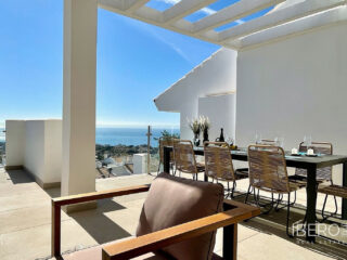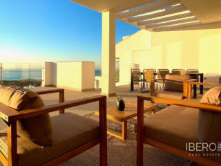 Tento moderní mezonetový penthouse nabízí úchvatný výhled na moře a výjimečnou polohu v Benalmádeně, jen kousek od pláže a půvabného centra Benalmádeny Pueblo. Objekt nabízí otevřený obývací pokoj s plně vybavenou kuchyní, tři ložnice, dvě koupelny a dostatek prostoru na terase v hlavním i horním patře, která je přístupná z jedné z ložnic. Střešní terasa poskytuje nádherný panoramatický výhled na okolí a moře, doplněná soukromou vířivkou a dostatkem prostoru pro opalování. Uvnitř apartmánu je v celém bytě keramická dlažba, klimatizace s teplou a studenou vodou, podlahové vytápění, detektory kouře a alarm. Ložnice jsou pro větší pohodlí vybaveny vestavěnými skříněmi. Nachází se v dobře udržovaném rezidenčním komplexu s krásnými společnými prostory, jako je úžasný společný bazén, posilovna, tenisové kurty, vířivka, whirlpool, sauna, víceúčelová místnost s kinem a dětský koutek. V kupní ceně jsou zahrnuta dvě podzemní parkovací stání a skladovací místnost. Nemovitost se nachází v Benalmádeně, v blízkosti centra Benalmádena Pueblo, které je známé množstvím restaurací a barů, a jen kousek od nejlepších pláží v oblasti. Snadný přístup k pobřežní silnici a dálnici, letiště Malaga je vzdáleno pouhých 15 minut jízdy. Tento apartmán je ideální jako druhé bydlení, rekreační dům nebo investiční nemovitost a nabízí vynikající potenciál pro dlouhodobý pronájem.