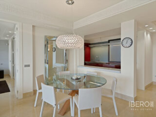 Úžasný apartmán se 3 ložnicemi a panoramatickým výhledem. Tento světlý a elegantní apartmán se 3 ložnicemi se nachází v luxusním komplexu Los Arrayanes a kombinuje velkorysý vnitřní prostor s výjimečným venkovním bydlením a nádherným výhledem. Vrcholem nemovitosti je působivá terasa o rozloze 143 m² orientovaná na jih, která obklopuje hlavní obytné prostory a stává se skutečným rozšířením domu. Je navržena pro relaxaci a zábavu, zachycuje sluneční světlo po celý den a předvádí rozsáhlé panoramatické výhledy, díky čemuž se scenérie stává přirozeným ústředním bodem nemovitosti. Uvnitř je prostorný, světlem naplněný obývací a jídelní prostor s otevřenou kuchyní, který vytváří moderní, společenské uspořádání. Okna od podlahy ke stropu zaplavují interiér přirozeným světlem a umožňují bezproblémový přístup na terasu z obývacího pokoje i hlavní ložnice. Byt nabízí tři velkorysé ložnice a tři dobře vybavené koupelny, které jsou dokončeny ve vysokém standardu. Prodává se s vlastním podzemním parkovacím stáním a úložným prostorem, což zajišťuje pohodlí a praktičnost. Los Arrayanes je proslulý svým exkluzivním vybavením a krásně udržovaným prostředím se svěžími zahradami, dvěma venkovními bazény a plně vybavenou posilovnou, to vše v bezpečném a klidném prostředí. Jedná se o výjimečnou rezidenci v jednom z nejprestižnějších projektů v Nueva Andalucía - ideální jako trvalé bydlení nebo luxusní prázdninové útočiště - nabízející prostor, soukromí a skutečně výjimečný výhled.