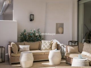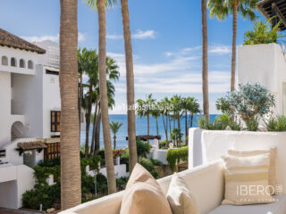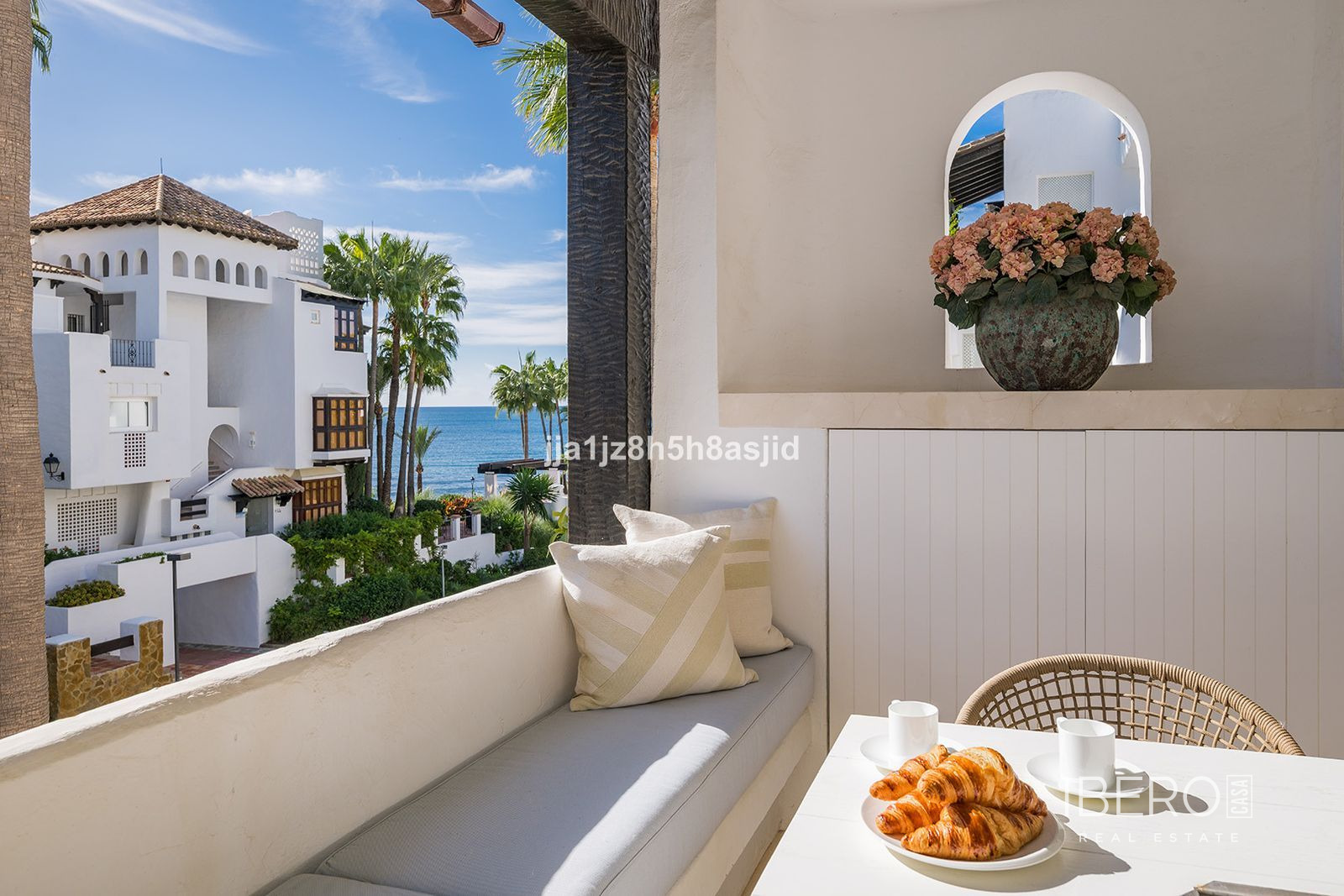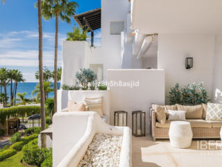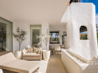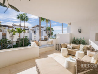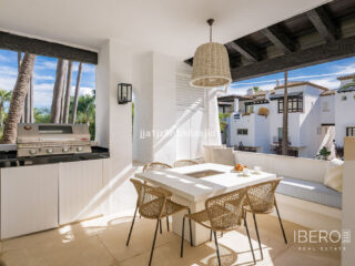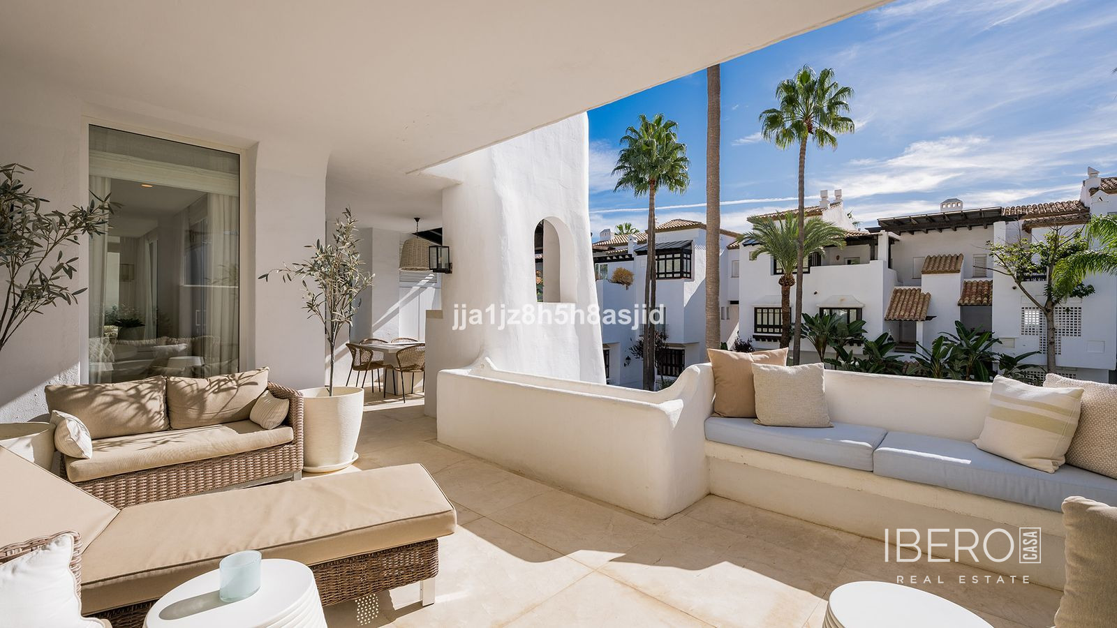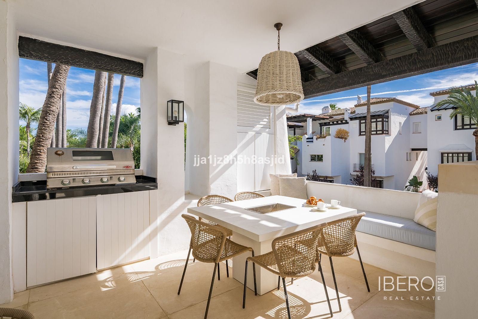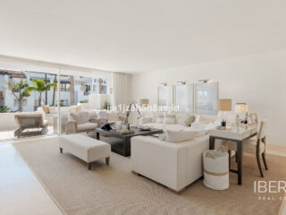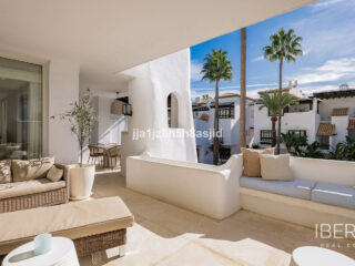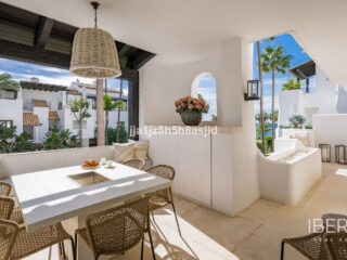 Výjimečný apartmán se 3 ložnicemi v Jardin Persa, Puente Romano Tento elegantní apartmán se 3 ložnicemi a 2 koupelnami v Jardin Persa se nachází v prestižním letovisku Puente Romano na Zlaté míli v Marbelle a nabízí maximální středomořský luxus a sofistikovanost. Tato nemovitost o celkové zastavěné ploše 170 m² se vyznačuje čistým, moderním designem s otevřenou kuchyní, rafinovanými povrchovými úpravami a velkorysými obytnými prostory, které plynule přecházejí na soukromou terasu s úchvatným výhledem na moře. Tato rezidence se nachází v první linii plážové urbanizace a těží z klidu svěžích zahrad, přímého přístupu na pláž a blízkosti proslulého hotelu Puente Romano a jeho prvotřídních restaurací, lázní a plážového klubu. Mezi další vlastnosti patří podlahové vytápění v celém domě, soukromé garážové stání a diskrétní, ale bezpečné prostředí ideální pro celoroční bydlení nebo jako exkluzivní prázdninové útočiště. Vzácná příležitost pořídit si nemovitost v jedné z nejžádanějších a nejstřeženějších lokalit Marbelly, kde se nadčasová elegance snoubí s pobřežním luxusem.