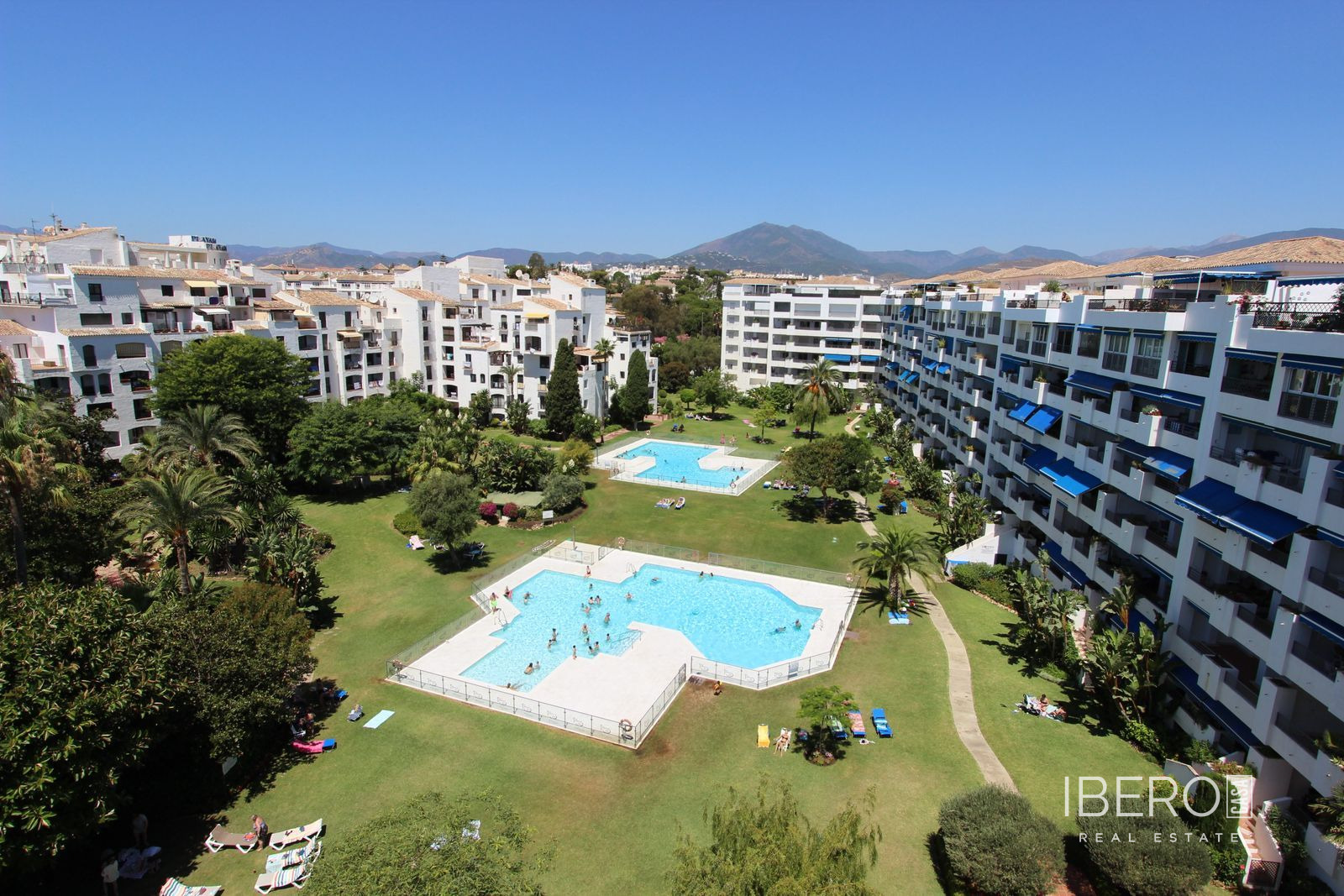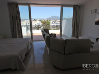 Ideální poloha tohoto 4lůžkového mezonetového penthouse se nachází v srdci slavného Puerto Banús, obklopeného obchody, bary a restauracemi a s plážemi vzdálenými jen několik minut chůze, takže není třeba používat auto. Komplex nabízí vzrostlé společné zahrady, 3 bazény a tenisové kurty. Ubytování se skládá ze 4 ložnic se 4 koupelnami (3 s vlastním sociálním zařízením), a proto se zde může ubytovat 8 osob. V přízemí je rozdělena na velký obývací pokoj s jídelnou a vstupem na krytou terasu s výhledem do krásných zahrad a k bazénům, plně vybavenou kuchyň s technickou místností (s pračkou a sušičkou), hlavní ložnici s vlastní koupelnou se vstupem na terasu a další ložnici s manželskou postelí s oddělenou koupelnou. V patře najdete velké hlavní apartmá, které počítá s vlastním obývacím pokojem se satelitní televizí, koupelnou a velkými okny otevírajícími se do solária s panoramatickým výhledem, a další velmi velkou ložnici se dvěma malými lůžky a koupelnou. K nemovitosti patří soukromé parkovací místo a klimatizace v celém apartmánu, satelitní TV s velkou plochou obrazovkou nahoře i dole, (k pronájmu: wifi a cestovní postýlka a vysoká židlička pro dítě).