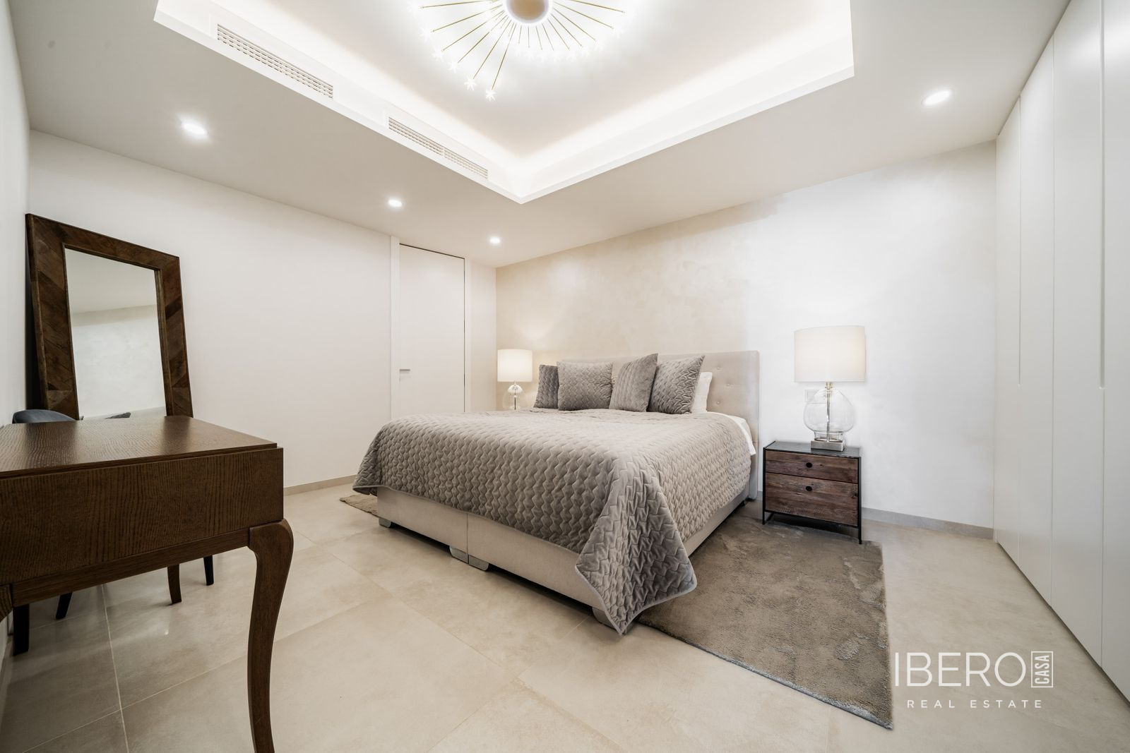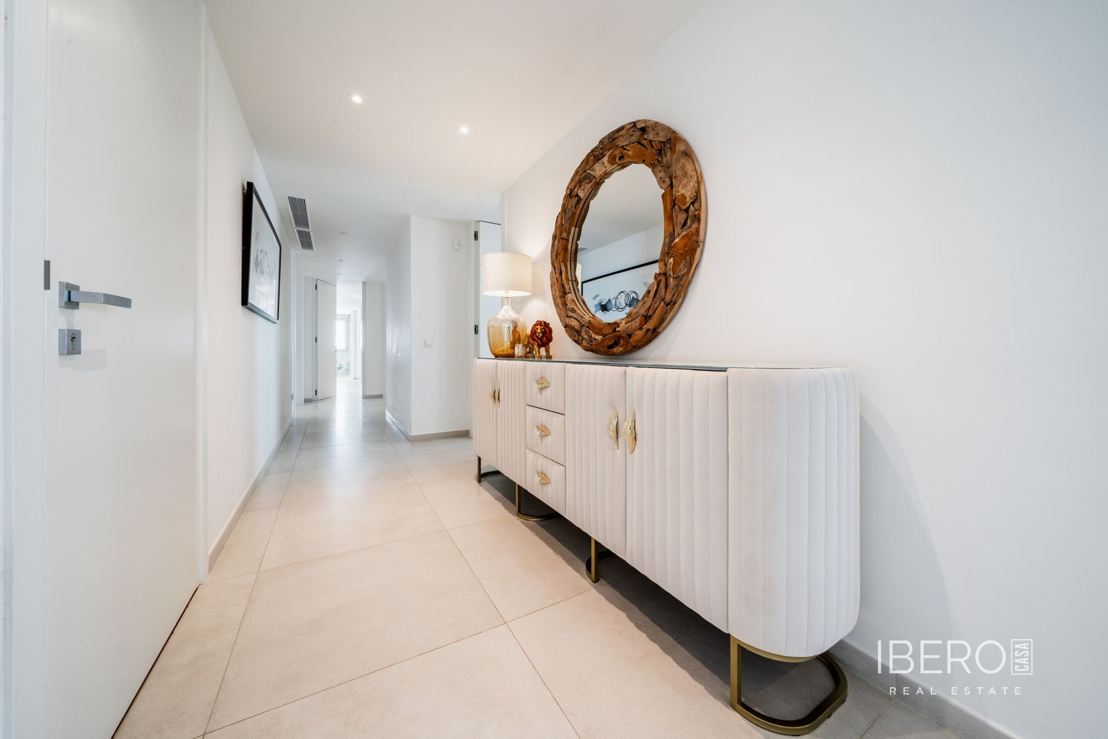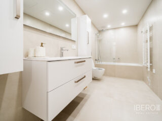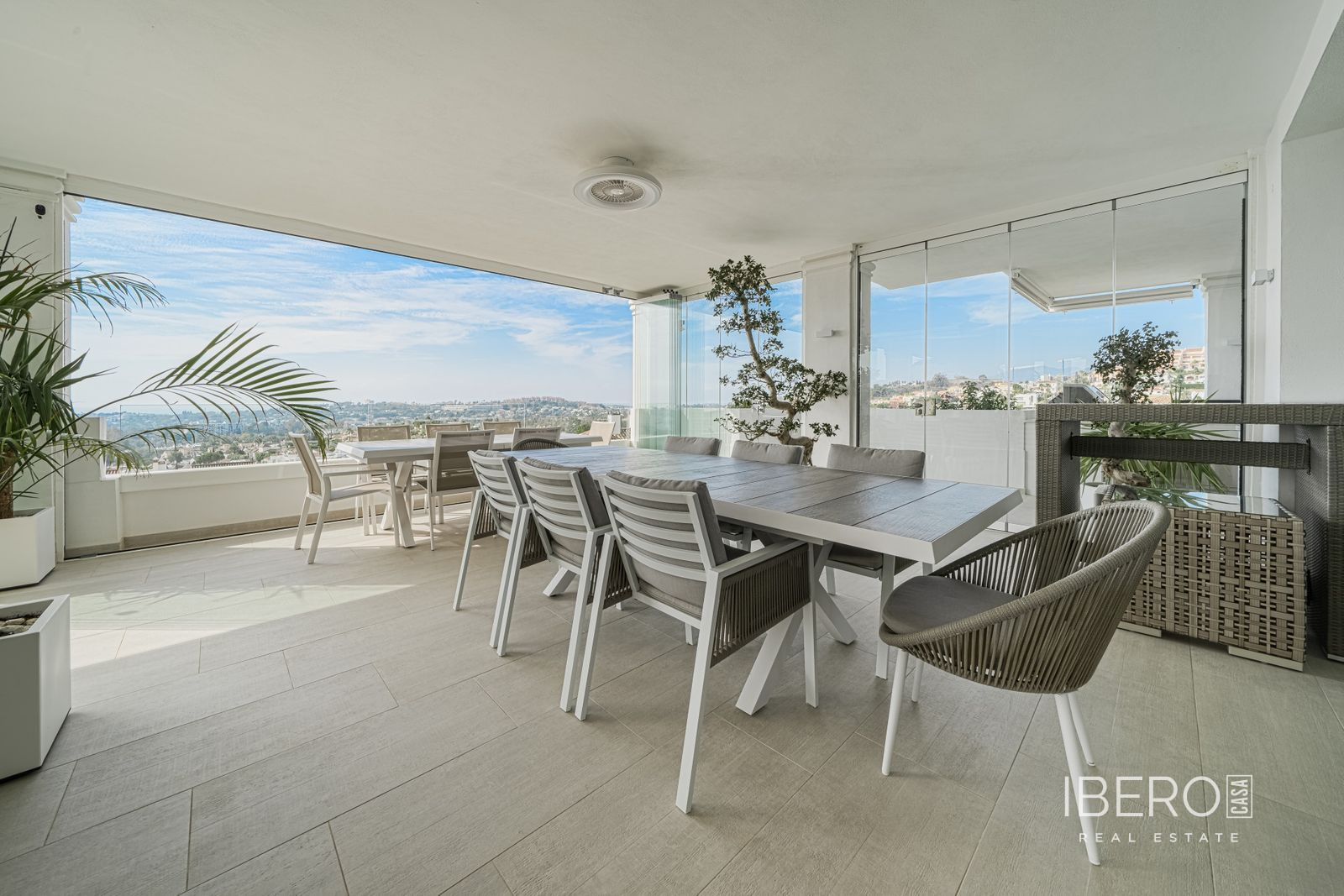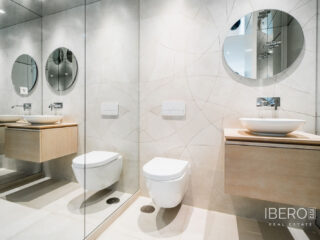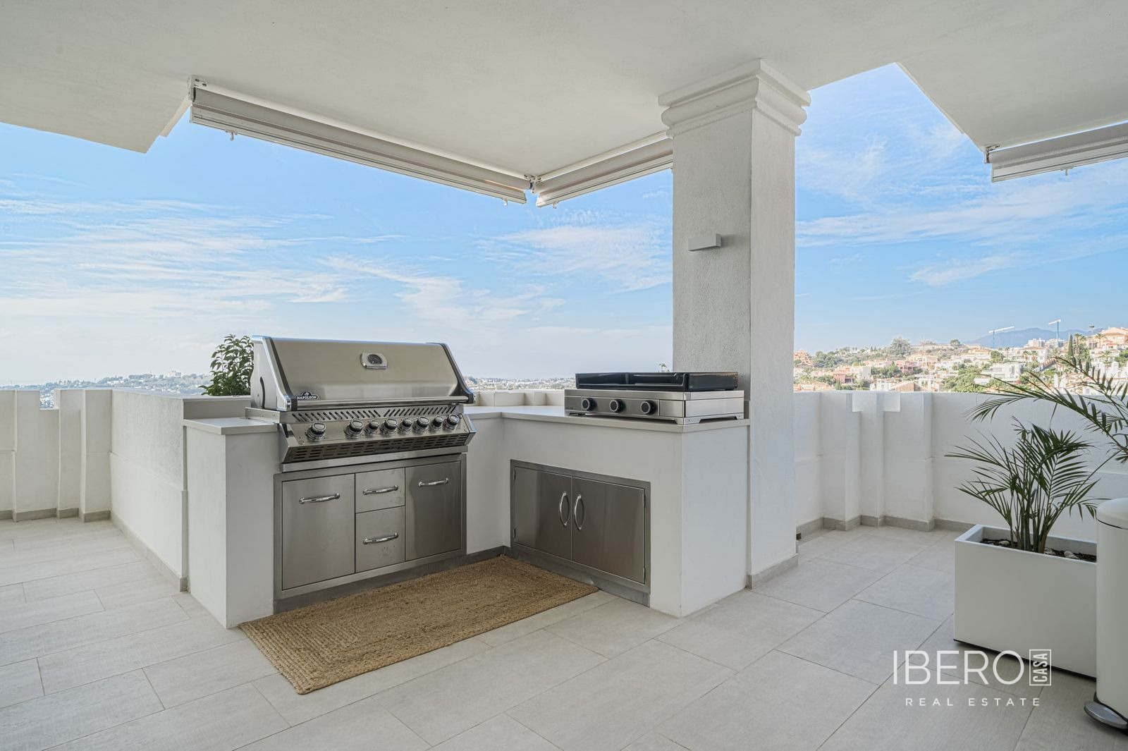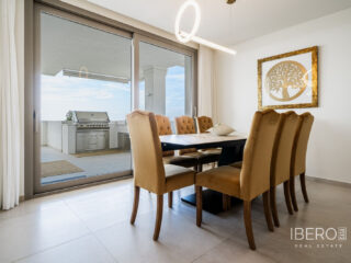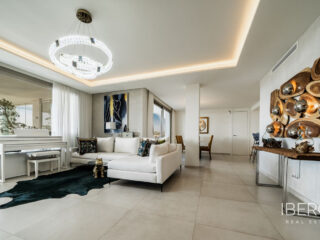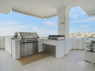 Skutečně jedinečný apartmán se 7 ložnicemi se nachází v Nine Lions, vyhledávaném a dobře zabezpečeném rezidenčním komplexu v Nueva Andalusii, který nabízí 53 apartmánů. Je postaven podle nejvyšších standardů, je orientován na jih a nabízí nádherný výhled na moře. Apartmán se rozkládá na jedné úrovni a zahrnuje: vstupní halu; obývací prostor s krbem; jídelní kout s otevřenou plně vybavenou kuchyní se spotřebiči Gaggenau; prosklenou terasu s letní kuchyní Napoleon a vířivkou; 7 ložnic; 5 koupelen; toaletu pro hosty. K vybavení patří: koupelny od Villeroy and Boch, kinosál, prádelna a sklad. Výtah z garáže přímo do apartmánu. Garážová stání pro 3 auta a další úložné prostory. Nabízí se plně zařízený. Komplex se může pochlubit společnými zahradami, třemi vyhřívanými bazény (dva venkovní a jeden vnitřní), saunou, plně vybavenou posilovnou a klubovnou, nepřetržitou ostrahou a službami concierge. Pouze kousek od veškeré občanské vybavenosti, pláže, Puerto Banús a centra Marbelly.