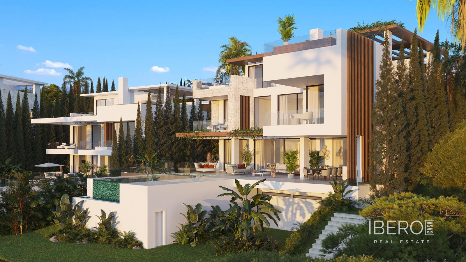 Nový vývoj: [Lůžka: 3 - 4] [Vany: 3 - 4] [Zastavěná plocha: 508,00 m2 - 924,00 m2]. Luxusní vily se nacházejí v malebném a privilegovaném prostředí, obklopené bujnou přírodou, a tvoří skupinu dvanácti sofistikovaných vil s moderní estetikou, navržených jedním z nejznámějších ateliérů na pobřeží Costa del Sol.