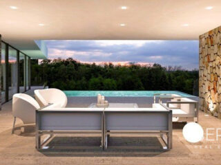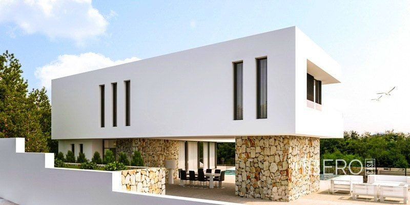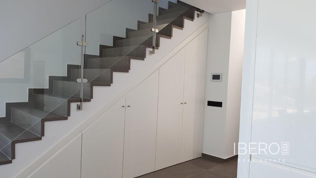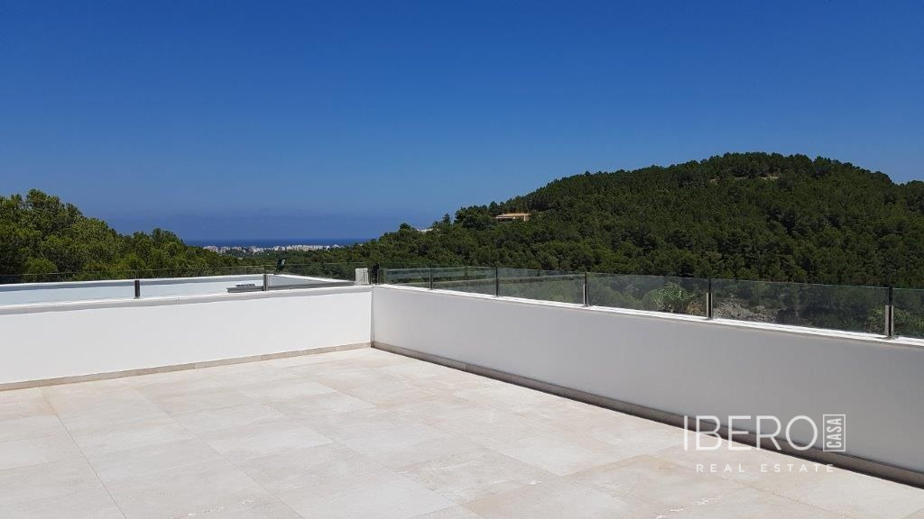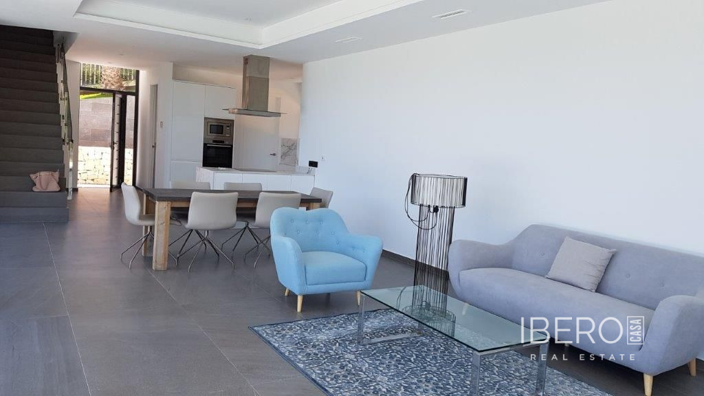 Novostavba luxusní vily se 3 ložnicemi a výhledem na Javeu a moře Vila se skládá v přízemí z velkého obývacího pokoje s jídelnou, kuchyně s přilehlou technickou místností a šatny pro hosty. V patře se nacházejí 3 prostorné ložnice a 2 koupelny (jedna s vlastním sociálním zařízením). Všechny ložnice mají vstup na velkou střešní terasu. Prostorný sklepní prostor s garáží s elektrickými vraty. Vytápění prostřednictvím tepelného čerpadla a solární energie. Centrální klimatizace. Uzavřený pozemek s vestavěným grilem, velkým nekonečným bazénem a terasovitou zahradou. Příjezdová cesta s bránou a další přístup ze silnice na úrovni vjezdu.