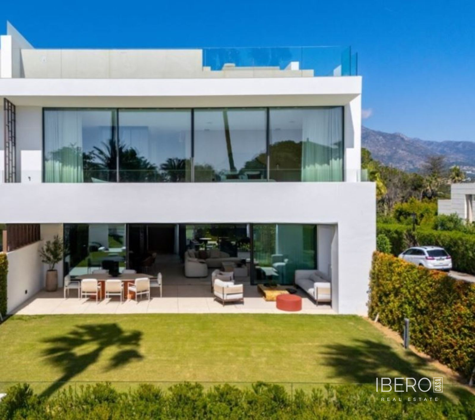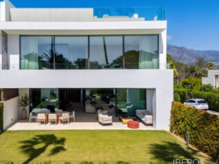 Současná dvojvila v Atalaya Río Verde Tato výjimečná dvojvila se nachází v prestižní komunitě Atalaya Río Verde a kombinuje moderní design, prvotřídní povrchové úpravy a vynikající polohu v jedné z nejžádanějších rezidenčních oblastí Nueva Andalucía. Jen pár minut od špičkových golfových hřišť, pláží, vynikající restaurace, Puerto Banús a Aloha College nabízí ideální rovnováhu mezi soukromím, komfortem a pohodlím. Nemovitost, dokončená v prosinci 2023, se rozkládá na 703 m² zastavěné plochy, z toho 415 m² vnitřní obytné plochy, 288 m² teras a 92 m² soukromé zahrady. Dům, který se rozkládá na čtyřech úrovních propojených schodištěm i soukromým výtahem, je navržen tak, aby maximalizoval přirozené světlo a vytvořil bezproblémový životní styl uvnitř i venku. Vstup se otevírá do elegantní haly s vodotrysky, která vede do prostorného otevřeného obývacího a jídelního prostoru orámovaného okny od podlahy ke stropu a přesahujícího na velkorysou terasu. Designová kuchyně vybavená spotřebiči Gaggenau spojuje elegantní estetiku s praktickou funkčností. Vnitřní terasa se vzrostlým olivovníkem dodává obytnému prostoru teplo a charakter. V prvním patře se nacházejí tři ložnice s vlastní koupelnou, dubovou podlahou, mramorovou povrchovou úpravou Porcelanosa a bohatým přirozeným světlem, včetně luxusní hlavní ložnice se šatnou a otevřeným výhledem. Spodní patro nabízí čtvrtou ložnici a soukromé kino, což dodává všestrannost a pohodlí pro rodinné bydlení nebo zábavu. Vilu korunuje úžasné střešní solárium s bazénem, venkovní kuchyní a kinem pod širým nebem, z něhož je panoramatický výhled na Středozemní moře, La Concha a okolní krajinu. Kompletně zařízená a vyzdobená nemovitost s vlastní garáží pro tři auta, ostrahou, společným bazénem a upravenými zahradami představuje rezidenci na klíč v jedné z nejvyhledávanějších lokalit Marbelly.