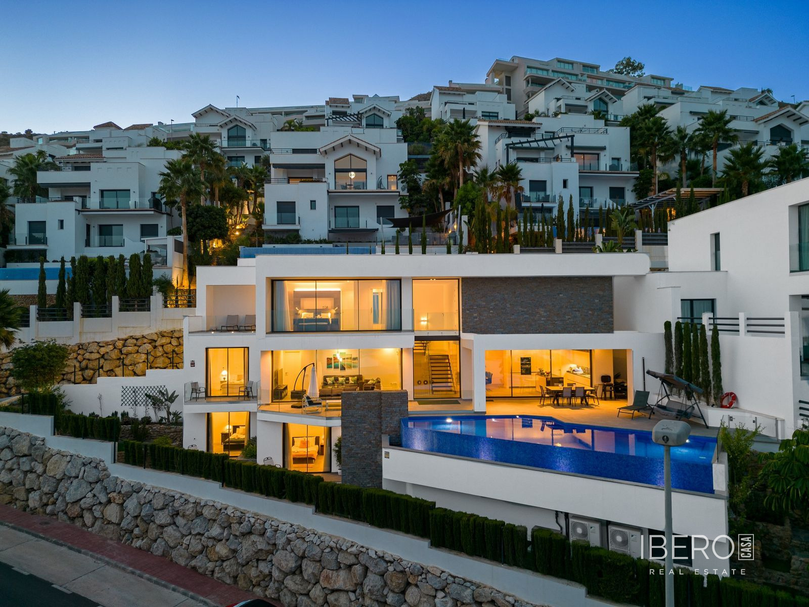 Koncept od myšlenky pohodlí bydlení tato vila má to všechno světlé a otevřené prostory s úžasným výhledem na moře ze všech obytných prostor. Špičková architektura a luxusní otevřené prostory s fantastickým výhledem na moře !!! MUSÍTE VIDĚT !! STAVBA DÁNSKÝM DEVELOPEREM s řádnou dánskou kvalitou!! Nejlepší poloha hned u Benalmádeny Pueblo s naprosto úžasným výhledem na moře s výhledem na nákladovou linii. Kouzelná vila nejen ve dne, ale i v noci s prosklenými barevnými světly z města fuengirola a okolí . Vila je orientována na jih / jihozápad a nabízí úžasnou terasu a zahradu s vlastním bazénem s dostatkem prostoru pro společenské setkání s přáteli a rodinou !!! Prostorná vila je vybavena 4 ložnicemi, 5 koupelnami, plně vybavenou kuchyní a garáží pro 2 auta.
