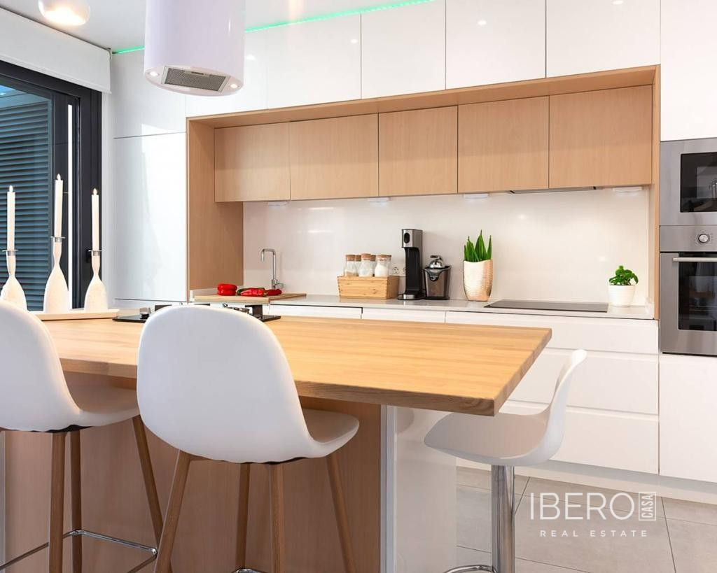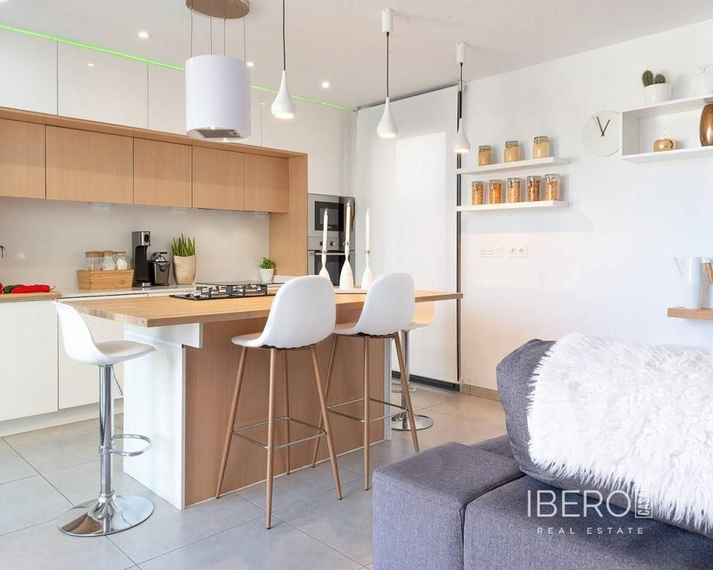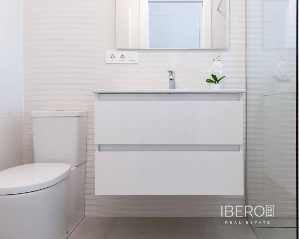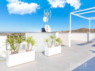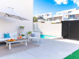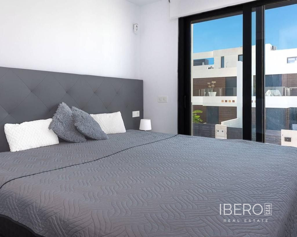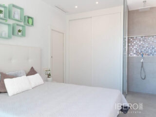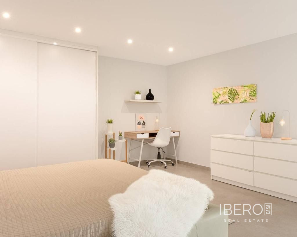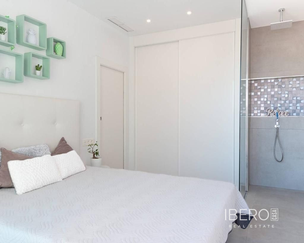 Východně orientovaná, jako nová, samostatně stojící vila se třemi ložnicemi a samostatným studiovým apartmánem v Benijofaru, který má také vlastní přístup. Nachází se s parkem, který hraničí s pouhými pěti—deseti minutami chůze od občanské vybavenosti, kterou Benijofar nabízí, včetně lékařského střediska, školy, barů, restaurací, McDonalds, obchodů, banky, supermarketu, lékárny a jen pár minut jízdy autem do hlavního řetězce supermarketů, Quesada, Rojales a golfového hřiště La Marquesa. Na pláže podél pobřeží se dostanete přibližně za deset minut jízdy autem. Tato jako nová moderní vila s turistickou licencí nabízí možnost dvou vynikajících příjmů z pronájmu, což se současnému majiteli podařilo. Hlavní vila nabízí světlý otevřený obývací pokoj; obývací pokoj s jídelnou a schody vedoucí do prvního patra; vybavenou kuchyň s ostrovem a dveřmi vedoucími ven; technickou místnost; rodinnou sprchovou místnost; dvoulůžkovou ložnici se šatní skříní a posuvnými dveřmi vedoucími k bazénu. V prvním patře jsou další dvě dvoulůžkové ložnice s vestavěnými skříněmi a koupelnami se sprchou, hlavní s terasou; schody vedou na soukromé střešní solárium, odkud si můžete vychutnat výhled na hory. Zahrada je obložená dlaždicemi s vlastním bazénem, grilem, přístupem pro auto. Samostatný apartmán o rozloze 70 m2 je přístupný přes jinou ulici, je otevřený s obývacím prostorem, vybavenou kuchyní, otevřenou ložnicí a sprchovým koutem. Nemovitost těží z potrubní klimatizace, byt má klimatizační jednotku. To je úplně, jedna příležitost, kterou si nesmíte nechat ujít.