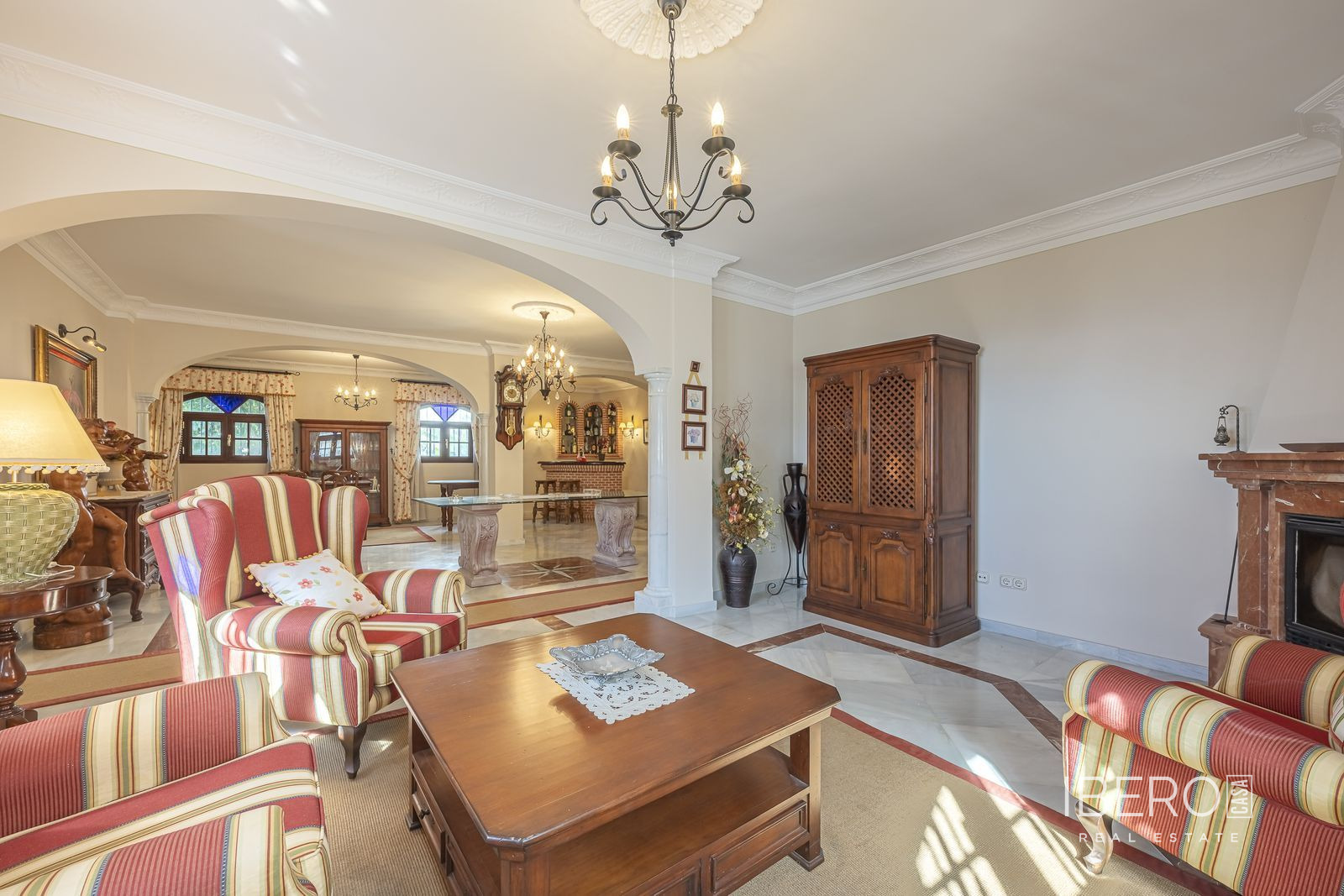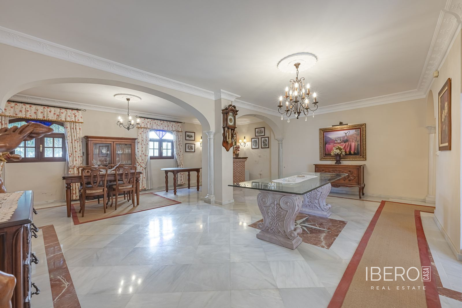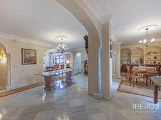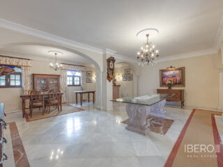 Představujeme působivý rodinný dům, který se nachází v Gaucínu, ve velmi klidné ulici ve městě a v pěší vzdálenosti od centra. Tato nemovitost je ideální pro ty, kteří hledají prostorný, pohodlný domov s výjimečným výhledem. Dům byl postaven z vysoce kvalitních materiálů, včetně mramorových podlah, které poskytují eleganci a trvanlivost, stejně jako nábytek a dveře z masivního dřeva, které umocňují jeho styl a charakter. Všechna světla v domě jsou navíc vybavena stmívači, což vám umožní vytvořit si dokonalou atmosféru za všech okolností. V přízemí domu se nachází soukromá garáž s kapacitou pro 2 auta s vnitřním přístupem do domu, která nabízí pohodlí a bezpečí. Při výstupu do prvního patra nás přivítá prostorný obývací pokoj s barem a krbem, vedle plně vybavené kuchyně a jídelny s krbem na dřevo. Z tohoto patra je přístup na venkovní terasu s výhledem do zahrady, ideálního prostoru, kde si můžete vybudovat bazén nebo si užívat ekologickou zahradu s ovocnými stromy. Kromě toho má nemovitost zadní vchod, který nabízí přímý přístup do zadní ulice, což poskytuje větší pohodlí. Ve druhém patře se nacházejí prostorné a světlé ložnice a uzavřená terasa s velkými okny, která nabízí nádherný výhled na hory a zahradu. V nejvyšším patře se nachází prádelna a velkolepá terasa s panoramatickým výhledem, z níž můžete obdivovat nádherný výhled na moře, Gibraltarskou skálu, hrad Castillo del Águila a pohoří Sierra Hacho. Za jasného počasí můžete vidět i pohoří severní Afriky, což poskytuje skutečně výjimečné prostředí. Tato jedinečná nemovitost, představuje jedinečnou příležitost pro ty, kteří touží po prostorném domě s přímým přístupem do zadní ulice a nesrovnatelným výhledem. Pro více informací nebo sjednání prohlídky nás neváhejte kontaktovat.