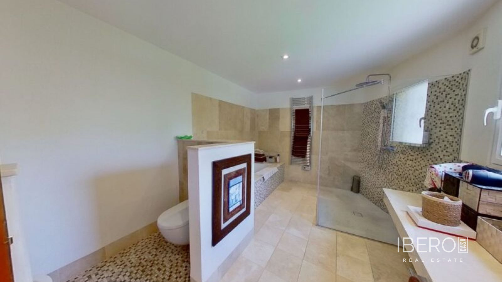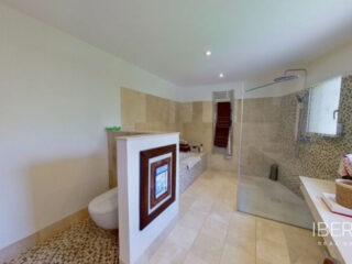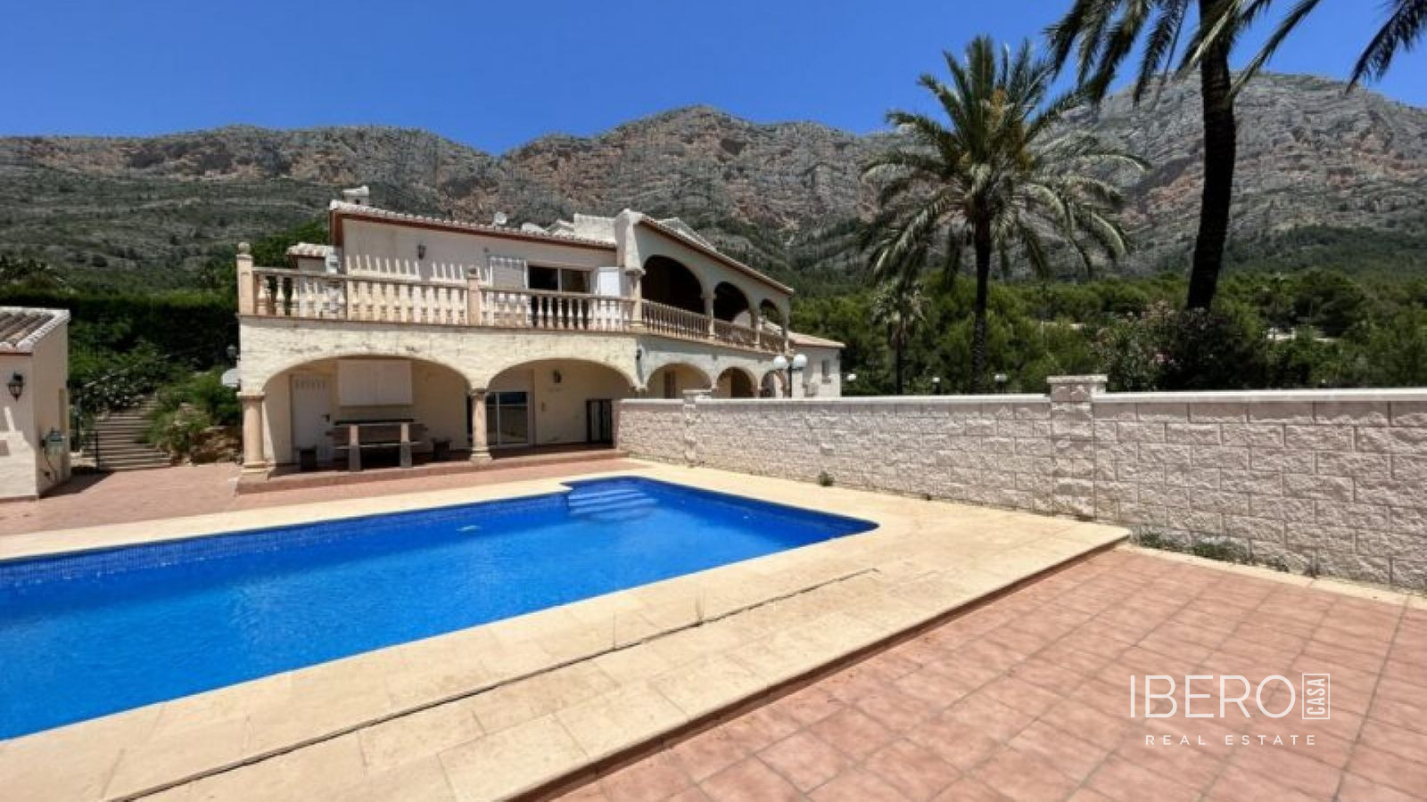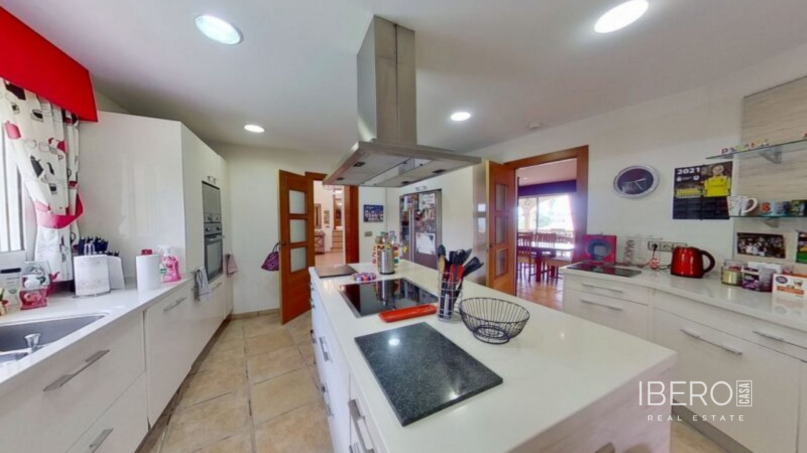 Tento úžasný objekt se nachází na klidném úpatí známé hory Montgo v Javea. Vila kontrastuje s dramatickou horskou kulisou za zády a jižním výhledem do údolí s vinicemi a pomerančovými háji v přední části. Velkolepý vchod nabízí výhled do údolí i na hory za ním. Po vstupu do nemovitosti odbočíte doprava do velké jídelny a obývacího pokoje s otevřeným krbem, z nichž se otevírá výhled na bazén a do údolí. Kuchyně je světlá s bílými kamennými povrchy a centrálním ostrůvkem. Všechny čtyři prostorné ložnice mají krásný výhled a hlavní ložnice má stylovou koupelnu s velkou šatnou. K dispozici je také kancelář, dvojgaráž a letní kuchyně u bazénu. Velký pozemek o rozloze 2630 m2 má dobře udržované zahrady. Pokud máte rádi Montgo, bude se vám tato vila líbit,