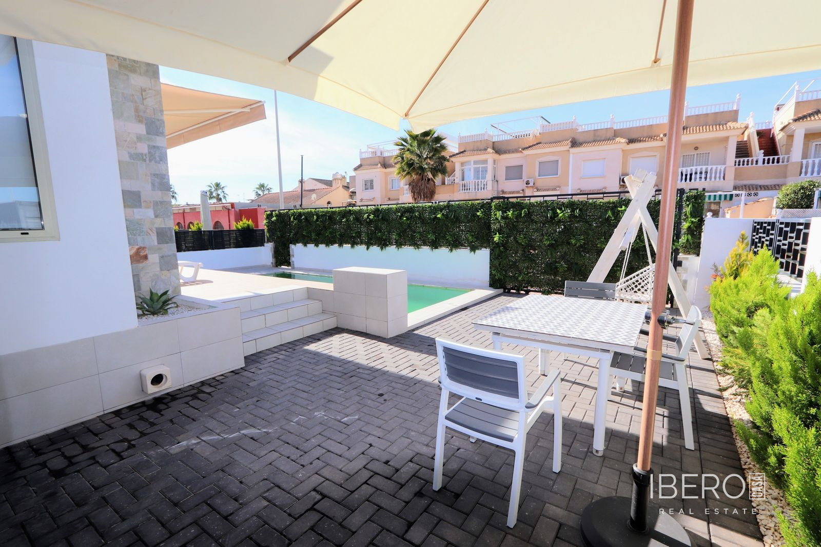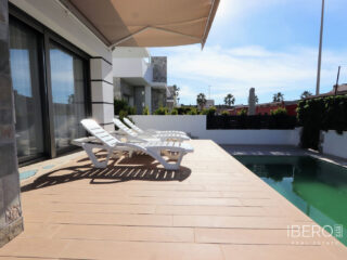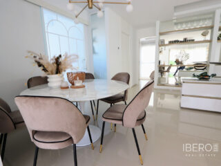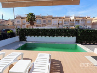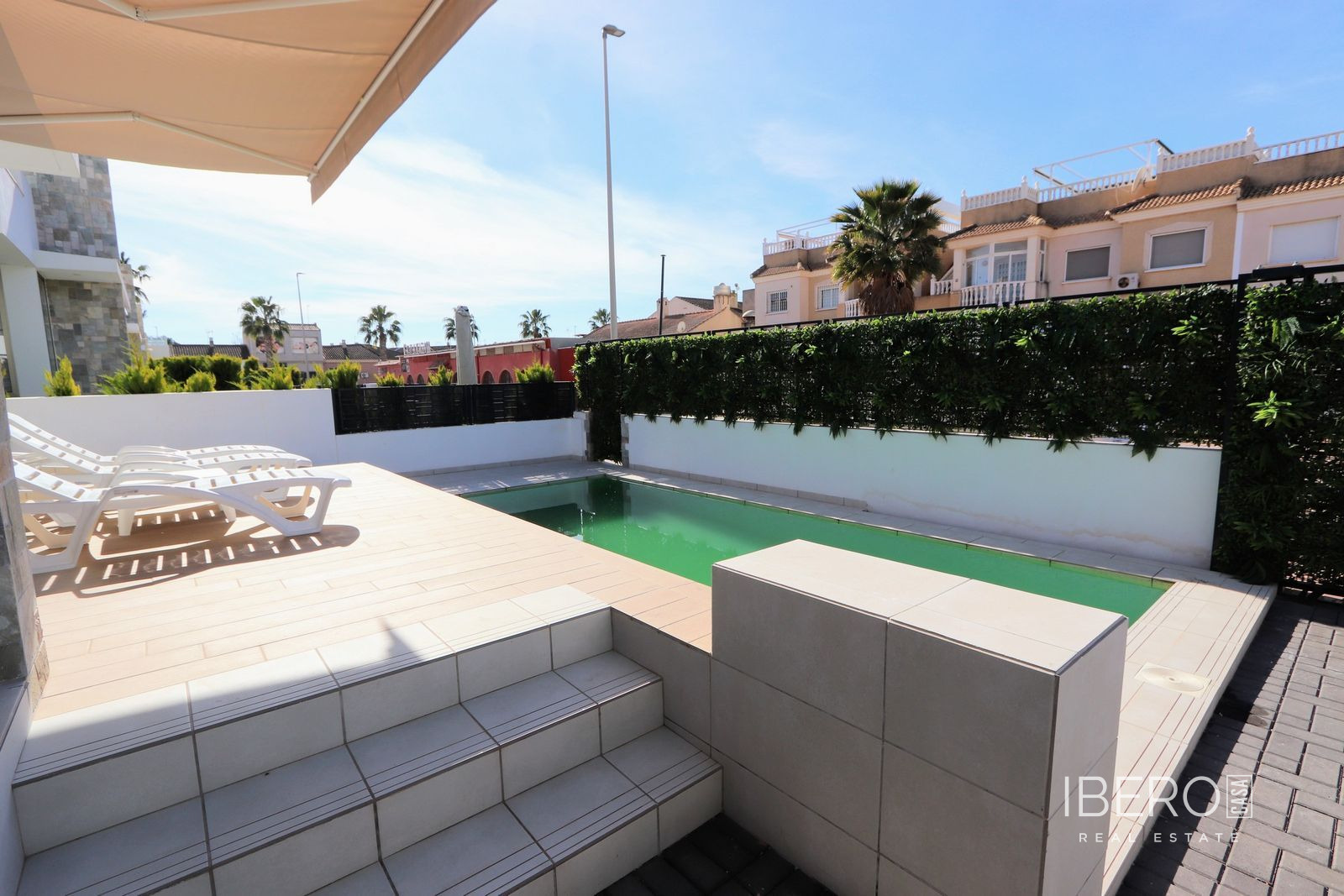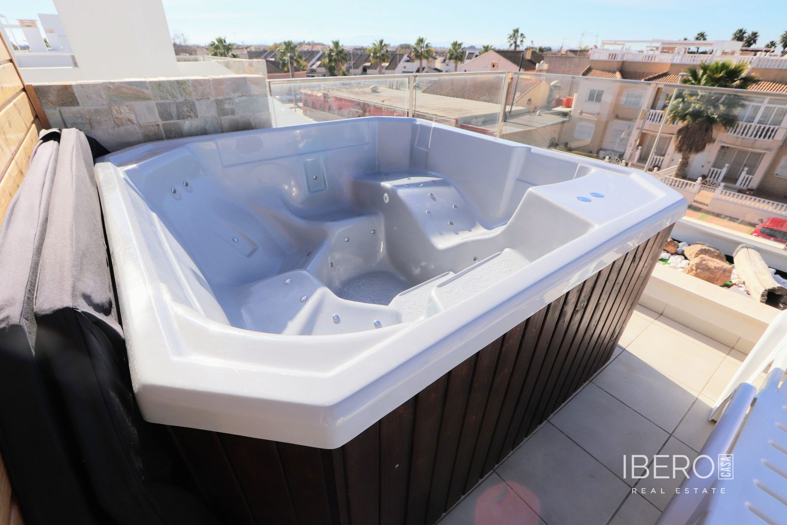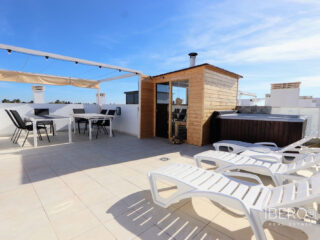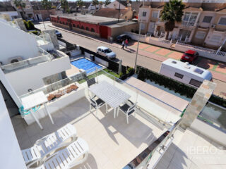 Jsme hrdí na to, že vám můžeme představit tuto fantastickou samostatně stojící vilu, která je vzdálená pouhých 900 m od pláže Los Alcazares a v pěší vzdálenosti od veškeré občanské vybavenosti. Nemovitost se skládá ze 4 ložnic, protože jedna je přeměněna z garáže na 4. ložnici, 3 koupelen, prostorného obývacího/jídelního prostoru s moderní otevřenou kuchyní. Z obývacího prostoru vedou posuvná okna na slunné terasy a k soukromému bazénu. Každé patro nabízí soukromé terasy s otevřeným výhledem a také velké střešní solárium s vířivkou, saunou a pergolou. Poloha vily je vynikající a nachází se pouhých 10 minut chůze od jedné z nejkrásnějších pláží na pobřeží Costa Cálida. Kromě toho zde najdete veškeré pohodlí na dosah ruky. Los Alcázares je krásné pobřežní město plné palem a nádherných pláží. Najdete zde všechny potřebné služby, například mnoho dobrých restaurací, tapas barů, kaváren a supermarketů. V klidných vodách Mar Menor můžete po celý rok provozovat vodní sporty a užívat si krásných pláží. Nákupní centrum Dos Mares je vzdáleno 10 minut jízdy autem. Velké nákupní centrum Zenia Boulevard se 130 obchody s módou je vzdáleno 20 minut jízdy autem. Přírodní parky Cabo de Palos a Callblanque jsou vzdáleny 20 minut jízdy autem.