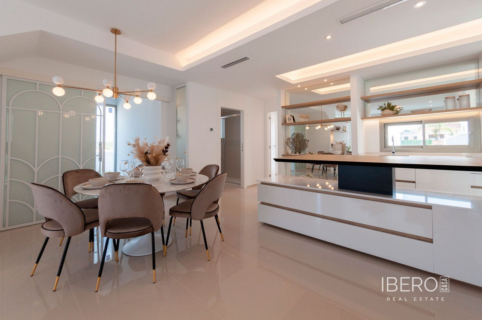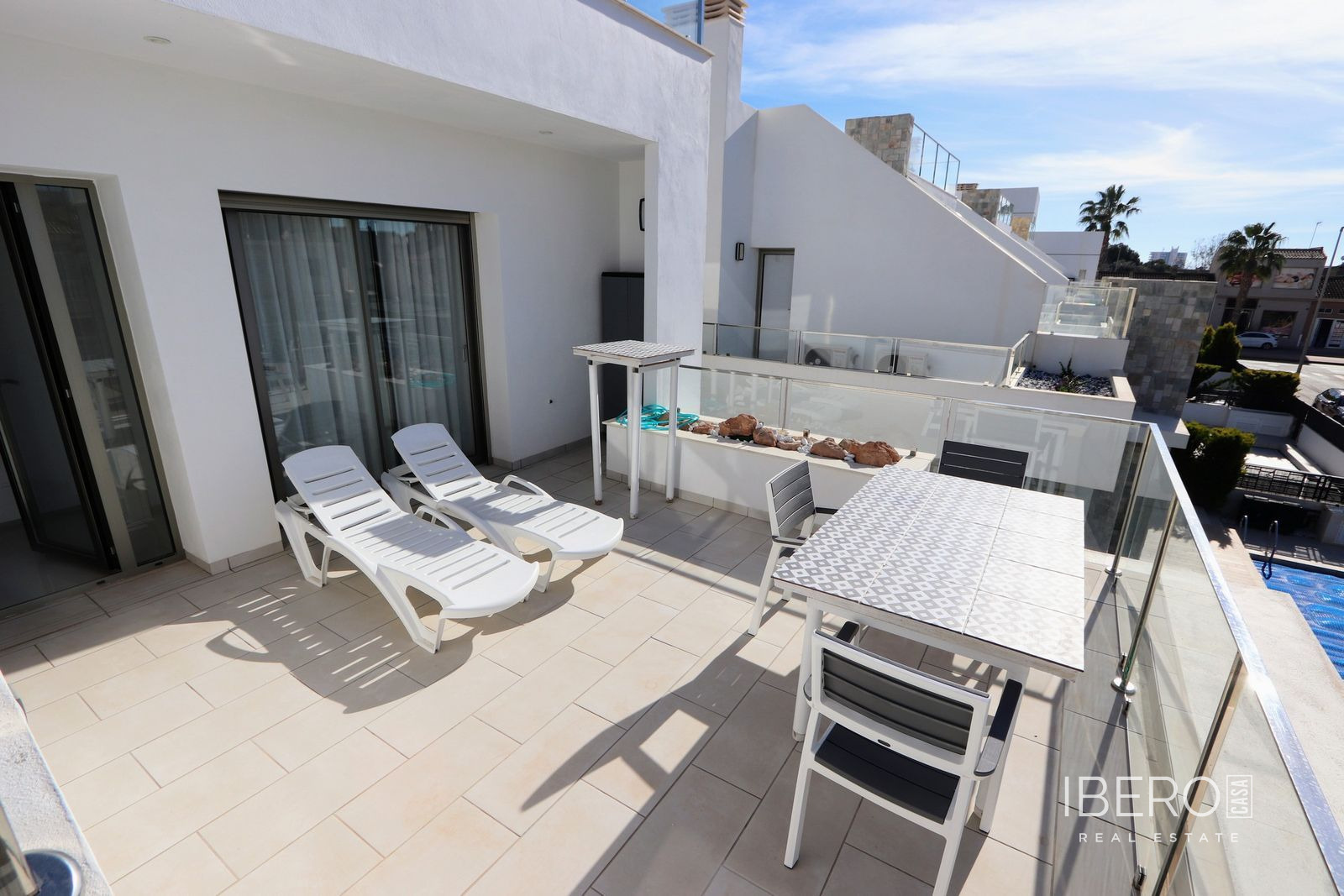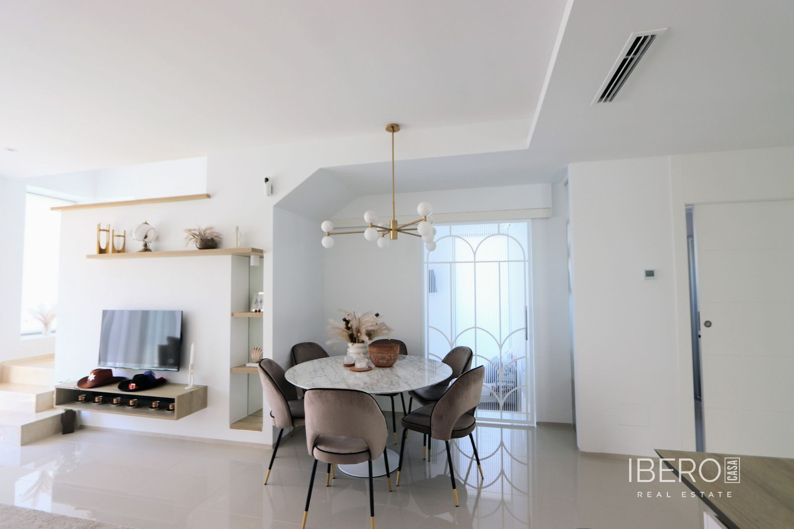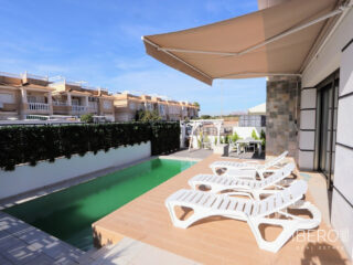 Jsme hrdí na to, že vám můžeme představit tuto fantastickou samostatně stojící vilu, která je vzdálená pouhých 900 m od pláže Los Alcazares a v pěší vzdálenosti od veškeré občanské vybavenosti. Nemovitost se skládá ze 4 ložnic, protože jedna je přeměněna z garáže na 4. ložnici, 3 koupelen, prostorného obývacího/jídelního prostoru s moderní otevřenou kuchyní. Z obývacího prostoru vedou posuvná okna na slunné terasy a k soukromému bazénu. Každé patro nabízí soukromé terasy s otevřeným výhledem a také velké střešní solárium s vířivkou, saunou a pergolou. Poloha vily je vynikající a nachází se pouhých 10 minut chůze od jedné z nejkrásnějších pláží na pobřeží Costa Cálida. Kromě toho zde najdete veškeré pohodlí na dosah ruky. Los Alcázares je krásné pobřežní město plné palem a nádherných pláží. Najdete zde všechny potřebné služby, například mnoho dobrých restaurací, tapas barů, kaváren a supermarketů. V klidných vodách Mar Menor můžete po celý rok provozovat vodní sporty a užívat si krásných pláží. Nákupní centrum Dos Mares je vzdáleno 10 minut jízdy autem. Velké nákupní centrum Zenia Boulevard se 130 obchody s módou je vzdáleno 20 minut jízdy autem. Přírodní parky Cabo de Palos a Callblanque jsou vzdáleny 20 minut jízdy autem.
