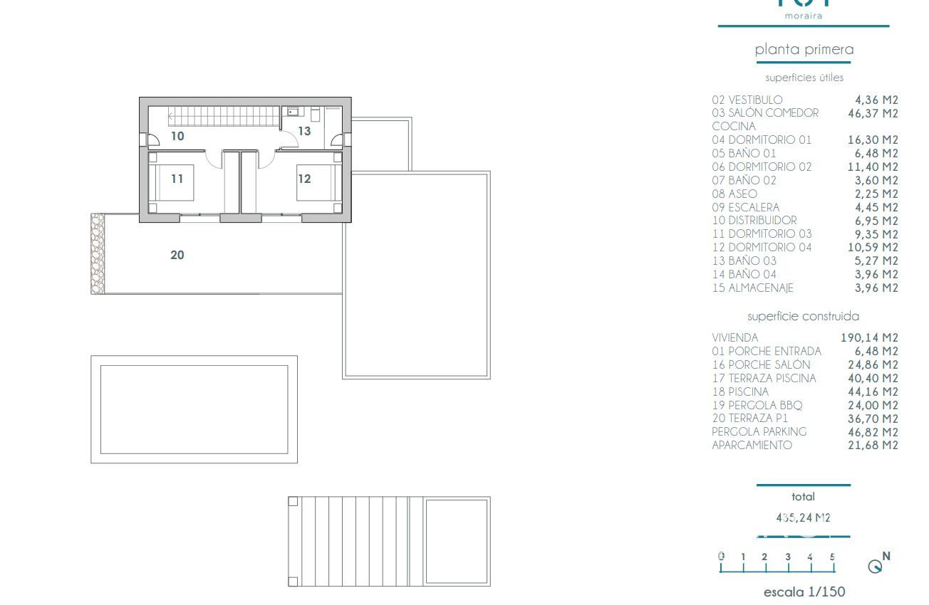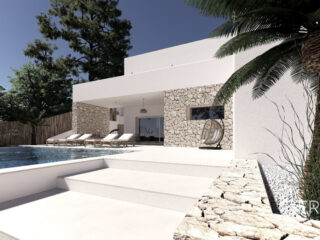 Stylová novostavba vily na prodej v Moraiře Nachází se v nové zástavbě v Pinar de L´Advocat nedaleko města Moraira. Tato středomořská nemovitost v sobě spojuje luxus a pohodlí pod španělským sluncem. Čisté linie a přitom hřejivý pocit díky použití přírodního kamene a dalších přírodních materiálů. Malebná vesnička Moraira je vzdálená jen něco málo přes kilometr. Zde najdete vše: pěkné obchody, restaurace, terasy, krásnou písečnou pláž, přístav a řadu dalších zařízení. Tato moderní vila má 2 podlaží. V přízemí se nachází prostorný obývací pokoj s jídelnou, moderní kuchyň, toaleta pro hosty a 2 ložnice s vlastní koupelnou. Vnitřní schodiště vede do horního patra, kde jsou další 2 ložnice se vstupem na soukromou terasu. Tyto ložnice mají společnou koupelnu. Z obývacího pokoje a kuchyně je přístup na krytou terasu, která plynule přechází ve sluneční terasu kolem bazénu o rozloze 40 m2. Zde se nachází také pergola s grilem, kde jistě strávíte mnoho letních večerů u jídelního stolu. Vedle této pergoly se nachází sklad a čtvrtá koupelna. V bezúdržbové zahradě najdete klid a pohodu a můžete si užívat všeho, co středomořský život nabízí. K dispozici je také přístřešek pro 2 auta. Další vlastnosti této atraktivní vily: předinstalované podlahové vytápění a alarm, venkovní sprcha, dvojitá skla a klimatizace (rozvody). Máte zájem o tento malý ráj? Neváhejte kontaktovat některého z našich zaměstnanců. Zobrazená cena nezahrnuje daně a pořizovací náklady / Nabídka podléhá chybám, změnám cen, dostupnosti, vynechání a/nebo stažení z trhu bez předchozího upozornění / Nábytek a obsah dle individuální dohody a nikoliv dle fotografií v prezentaci