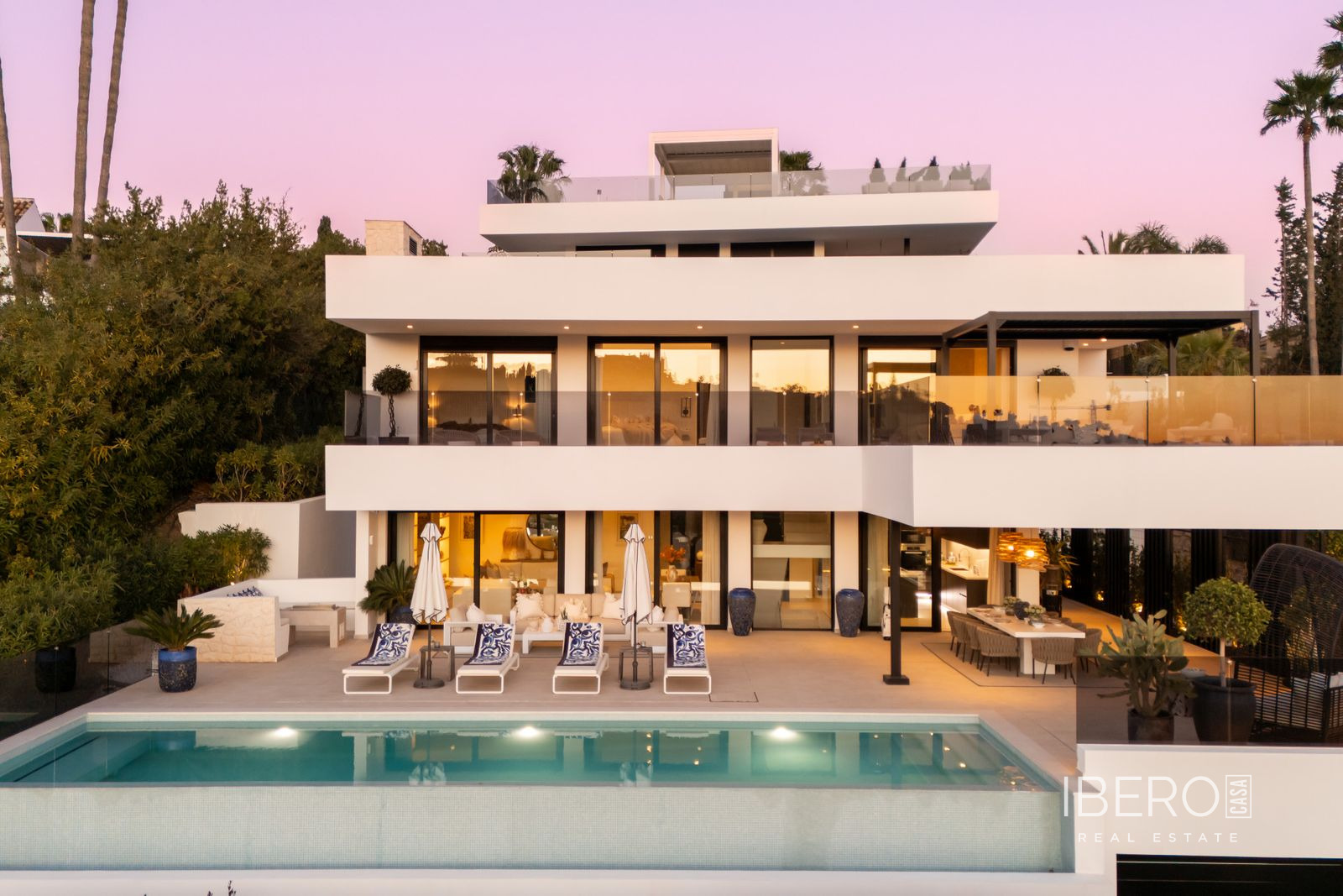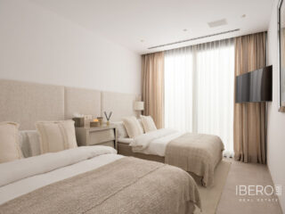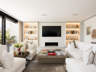 Moderní vila v srdci prestižního golfového údolí Nueva Andalucía, která je orientována na západ s výhledem na proslulé golfové hřiště Los Naranjos. Rezidence se rozkládá na třech podlažích a nabízí rozsáhlé výhledy na udržované fairwaye a okolní krajinu, což vytváří klidnou a sofistikovanou atmosféru. Rozsáhlé terasy se otevírají nekonečnému bazénu a elegantním venkovním obytným prostorám, které jsou navrženy pro bezproblémovou zábavu na pozadí zeleně. Uvnitř se interiéry díky oknům sahajícím od podlahy ke stropu koupou v přirozeném světle, což umocňuje plynulý tok mezi rafinovanými obytnými prostory a venkovním prostředím. Otevřená kuchyně vybavená špičkovými spotřebiči Miele kombinuje elegantní design s každodenní funkčností. Čtyři prostorné ložnice, včetně klidného hlavního apartmá s přímým vstupem na terasu, nabízejí pohodlí a soukromí, zatímco vyhrazené zábavní patro s vinotékou dodává exkluzivitu. Soukromá garáž a příjezdová cesta doplňují tento výjimečný dům, kde se moderní design snoubí s nadčasovým půvabem nejvyhledávanějšího golfového prostředí Marbelly.