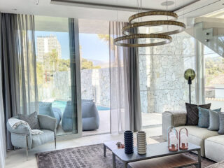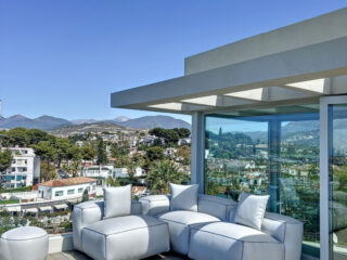 Velkolepá nová moderní vila nebo prodej ! Tato vila / penthouse byla postavena podle nejvyšších standardů a nachází se v těsné blízkosti rušného Puerto Banus . Nachází se na vyvýšeném pozemku s bezkonkurenčními 360 stupni, úžasným panoramatickým výhledem na moře a hory a kvalitami čistého luxusu. Kombinace světlé otevřené kuchyně a obývacího prostoru s velkými posuvnými okny s výhledem na velký bazén vytváří příjemný. útulný a přitom velmi světlý vzdušný obytný prostor. Střešní solárium nabízí nejkrásnější výhled na moře všude kolem , Gibraltar a La Concha . Na tomto pokladovém místě najdete skrytý klenot, kde si můžete po celý rok užívat opalování nebo ponoření do velké vířivky se slanou vodou. Terasa vedle jídelny nabízí předinstalaci pro venkovní kuchyň nebo BBQ s plynem. Domotics v celé vile & Sonos hudební instalace přítomna na každém místě. Plně vybavená kuchyň od firmy Molteni se spotřebiči Miele a Bora. Vestavěné skříně MOLTENI . Vzhledem ke způsobu, jakým byl tento postaven, můžete to považovat za samostatný velký penthouse . VEŠKERÝ NÁBYTEK V CENĚ! Pokud hledáte moderní , vysoce kvalitní místo s velmi malou údržbou velmi blízko veškeré občanské vybavenosti, může to být právě to místo, které hledáte ! Samozřejmě je tato nemovitost také perfektní investicí k pronájmu ! ROZHODNĚ MUSÍTE VIDĚT !