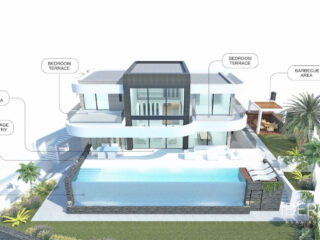 Moderní ekologická vila mimo plán v La Reserva de Sotogrande s fantastickým panoramatickým výhledem a 4 ložnicemi se 4 koupelnami a toaletou pro hosty. Tato nemovitost bude postavena na 3 podlažích a skládá se z; Suterén: garáž, místnost pro instalace, sklad, rozvodna, strojovna s vodopádem, obývací pokoj, kulečníková místnost, 1 ložnice s oknem plné velikosti a přirozeným světlem, vlastní koupelna, kinosál, místnost pro instalace bazénu a zenové nádvoří. Přízemí: vstupní hala s rozdělovačem, toaleta pro hosty, spíž/prádelna, plně vybavená kuchyň, jídelna, obývací pokoj, 1 ložnice s vlastní koupelnou, bazén, chill-out, gril a zahrada, terasy a ca zastřešená terasa. První patro; rozdělovač, šatna, hlavní ložnice s Home Spa, toaletou, sprchovým koutem a terasou, další koupelna s vlastní koupelnou a terasou. Jak vidíte, v plánech není výtah, ale pokud si ho klient bude přát, bude poskytnut bez příplatku a zvýší celkovou zastavěnou plochu o cca 20,00 m2. Obrázky koupelen a kuchyní jsou jen příklady toho, jak by to mohlo vypadat, ale konečná volba bude na klientovi! Příklad některých specifikací; - Vysoce izolovaná podlaha a střecha suterénu s JACKODUR nebo podobným materiálem. - Izolované dutinové stěny - Vnitřní a vnější dlažba GRESPANIA 600x600 - 800x800 - 1200x1200 (barva a rozměr dle výběru). - Stěny koupelny s deskami COVERLAM 2700X1200 (barva dle výběru) - Koupelny od společnosti ROCA - Aerotermie/klimatizace - Výtah od společnosti Schindler - Podlahové vytápění v celé vile - Okna s vysokým stropem a zapuštěnou kolejnicí, 5+5/komora/6+6 - Stropní vysoké a 1 metr široké dveře - Stropní vysoké otočné dveře a šířka 1,50 - Kompletně vybavená kuchyňská linka s hliníkovými rámovými dveřmi a s obložením COVERLAM (barva dle výběru) - Ostrůvek s COVERLAMEM 3600X1600 bez viditelných spár - Bílá technika Bosch nebo AEG (dle výběru konstruktéra) - Zásuvky, vypínače a stmívače od společnosti NIESSEN - Vyhřívaný bazén - 20 voltaických panelů - 2 lithiové baterie po 10kW - Autonabíječka - Domótica Jsme stavební společnost Key-in-Hand, která dokáže navrhnout a postavit jakoukoli možnost, na kterou si vzpomenete. Pokud u nás nevidíte návrh, který by se vám líbil, navrhneme pro vás zcela novou vilu podle vašich představ a podnětů. Ačkoli dáváme přednost ekologickým stavbám, můžeme stavět od tradičních staveb až po ekologické stavby, vše záleží na vás.