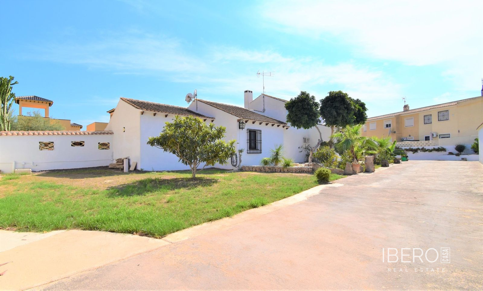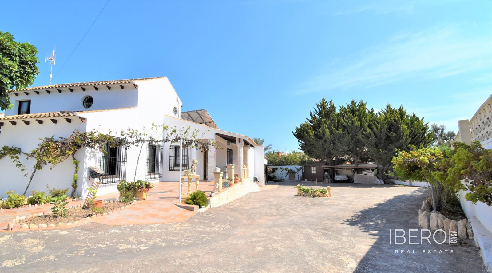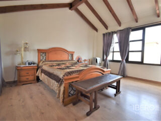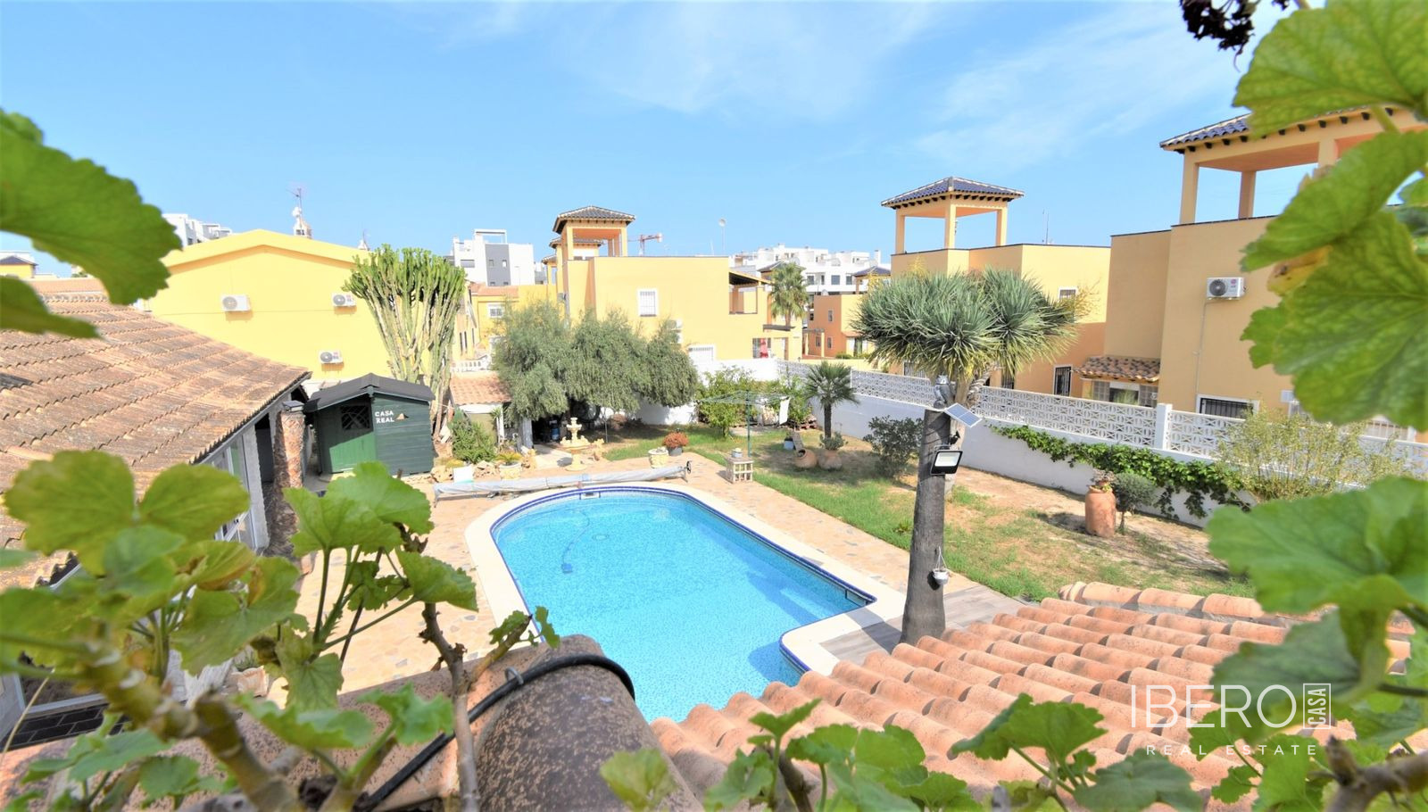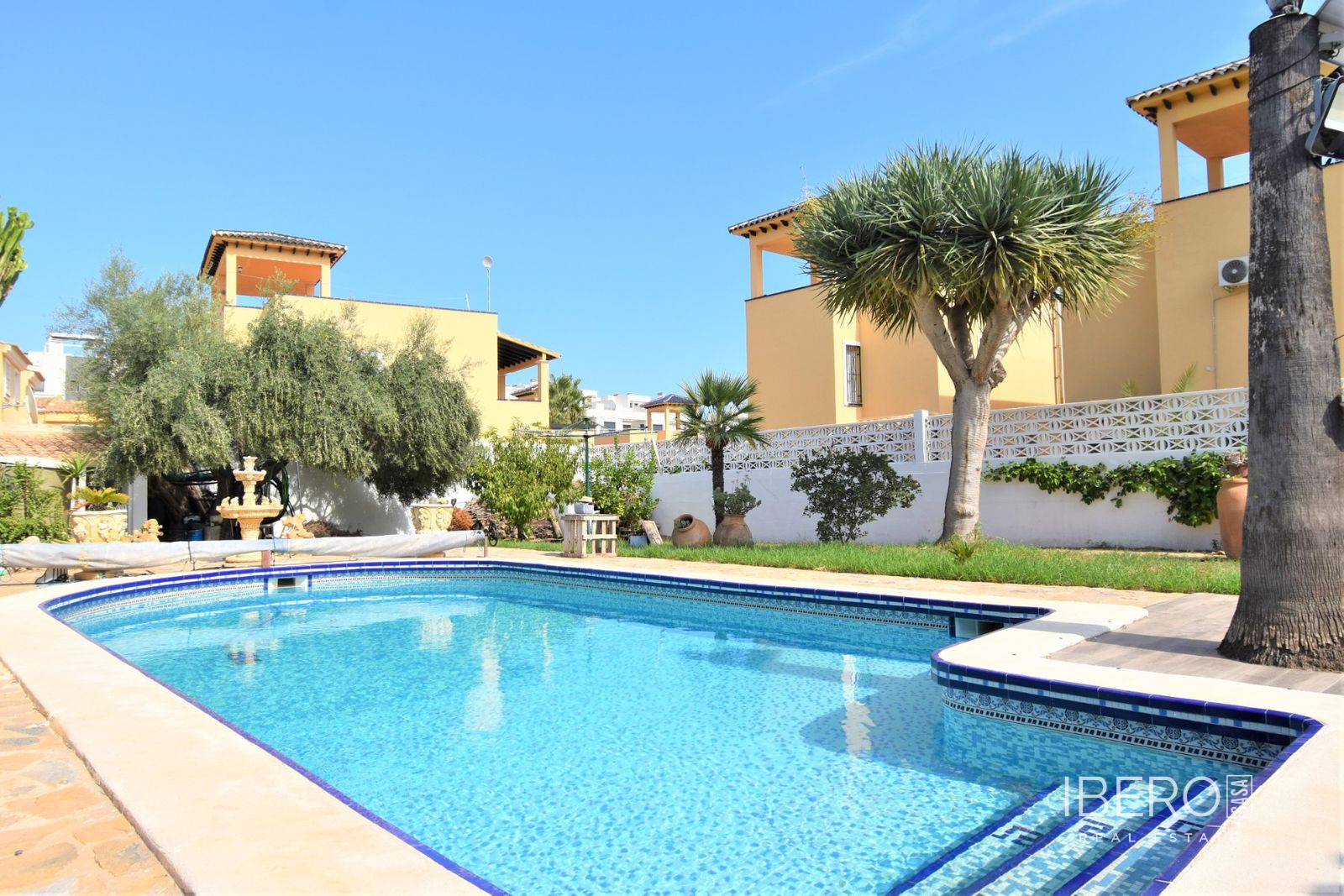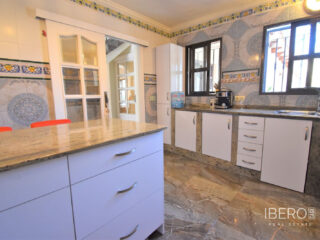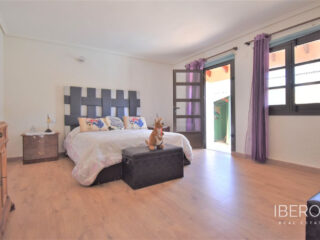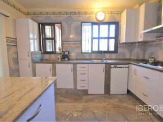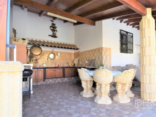 Tato naprosto úžasná samostatně stojící vila se čtyřmi ložnicemi v obci Villamartin, orientovaná na jih, se nachází jen pár minut jízdy od golfového hřiště Villamartin a jeho známého náměstí. Deset minut chůze od místního baru/restaurace a autobusové zastávky, deset minut jízdy autem od nákupního centra La Zenia Boulevard a dalších pět minut od pláží na pobřeží. Tato úžasná vila o rozloze 325 m2 nabízí takový charakter, zaujímá pozemek o rozloze 1762 m2 a skládá se z: dvou sad dvojitých otevíracích dveří vedoucích do obývacího prostoru s ozdobným krbem, čtvercový široký oblouk vede do jídelny; samostatná kuchyň vybavená v moderním stylu; technická místnost; tři dvoulůžkové ložnice, dvě s vestavěnými skříněmi, hlavní s přístupem na terasu a vlastní sprchou, rodinná sprchová místnost. V prvním patře se nachází ložnice s manželskou postelí, vestavěnými skříněmi, přístupem na terasu a koupelnou se sprchou. Vnitřní přístup umožňuje vstup do solária. Venku je krásná krytá prostorná terasa, převážně prosklená a s výhledem přímo na soukromý bazén se slanou vodou, který má zatravněnou zahradu a obklady kolem; místnost s nádržemi na vodu pro zavlažování zahrady, keře, keře, vnější krytá kuchyňská linka, rozsáhlé možnosti parkování, včetně přístaviště pro auto. Mezi doplňky patří vinotéka v podsklepené budově, která má vnější přístup, trámový strop ve většině místností, solární panely na ohřev vody.