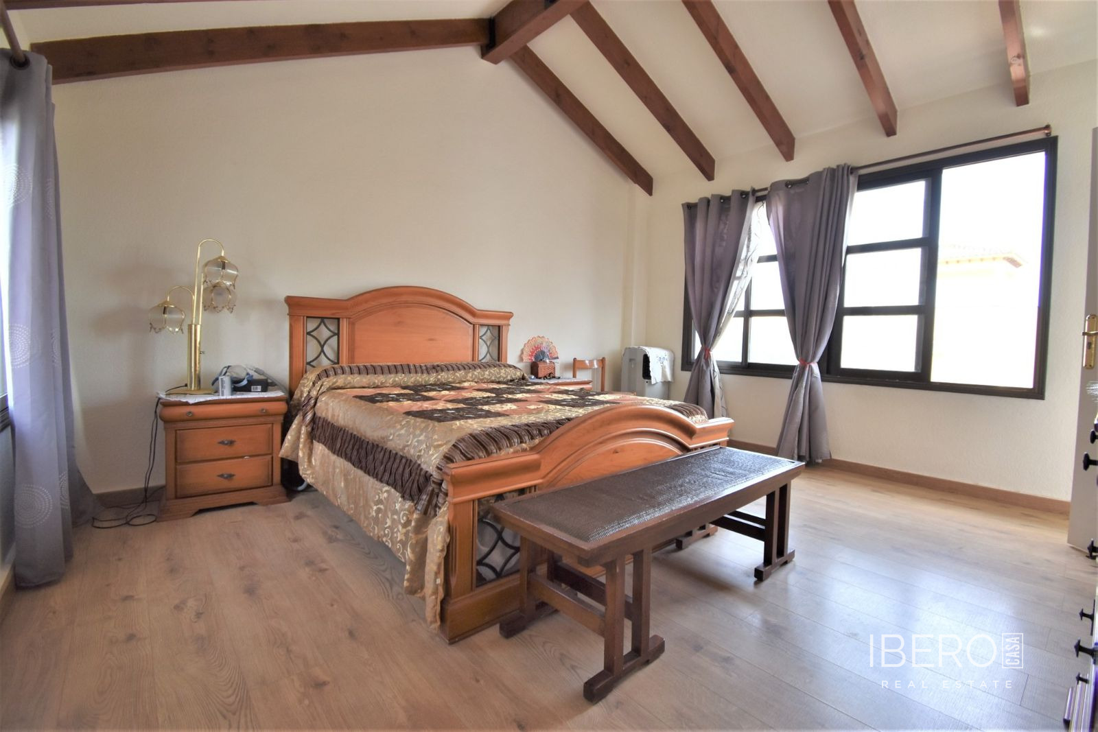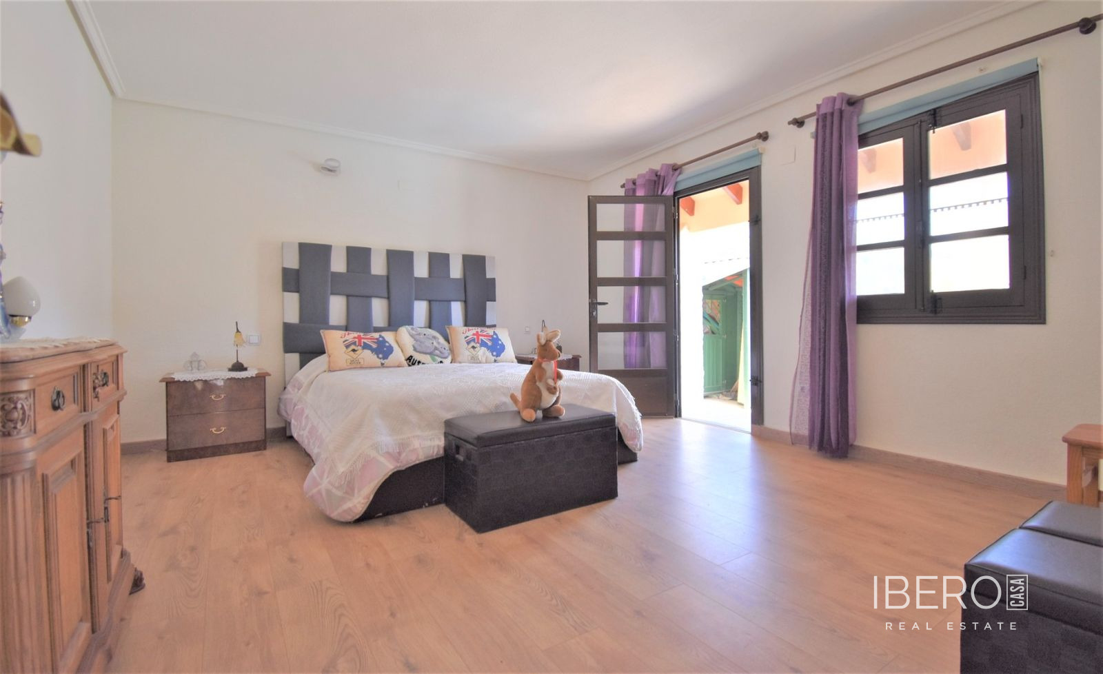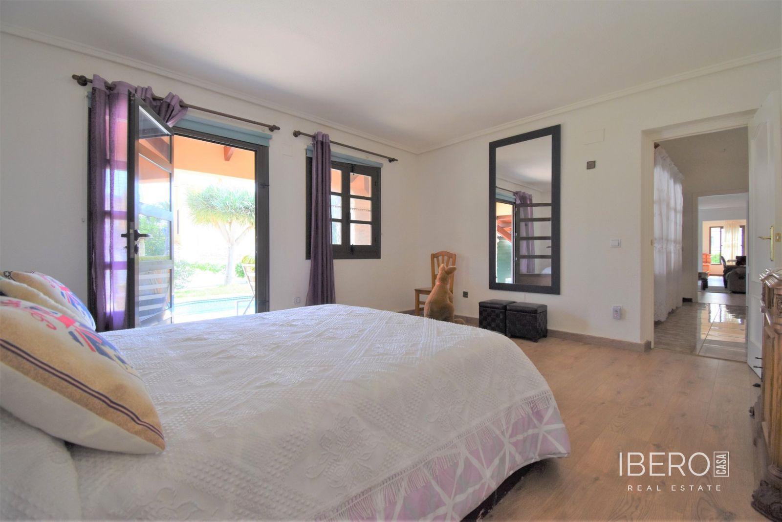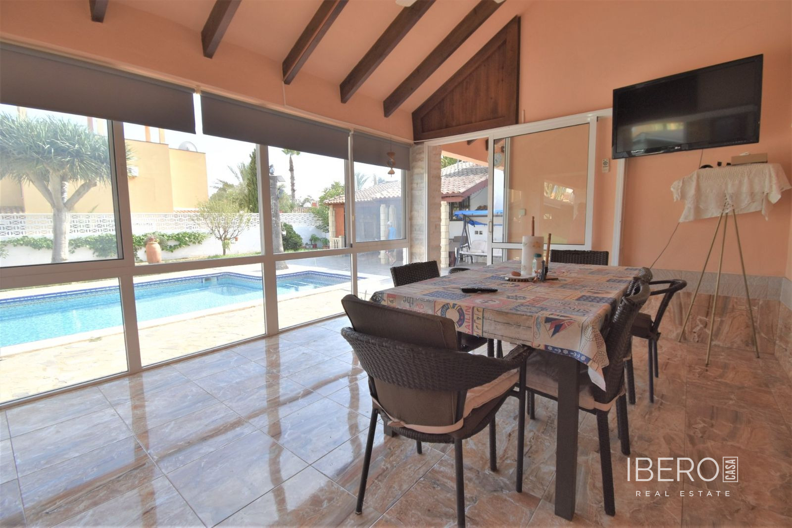 Tato naprosto úžasná samostatně stojící vila se čtyřmi ložnicemi v obci Villamartin, orientovaná na jih, se nachází jen pár minut jízdy od golfového hřiště Villamartin a jeho známého náměstí. Deset minut chůze od místního baru/restaurace a autobusové zastávky, deset minut jízdy autem od nákupního centra La Zenia Boulevard a dalších pět minut od pláží na pobřeží. Tato úžasná vila o rozloze 325 m2 nabízí takový charakter, zaujímá pozemek o rozloze 1762 m2 a skládá se z: dvou sad dvojitých otevíracích dveří vedoucích do obývacího prostoru s ozdobným krbem, čtvercový široký oblouk vede do jídelny; samostatná kuchyň vybavená v moderním stylu; technická místnost; tři dvoulůžkové ložnice, dvě s vestavěnými skříněmi, hlavní s přístupem na terasu a vlastní sprchou, rodinná sprchová místnost. V prvním patře se nachází ložnice s manželskou postelí, vestavěnými skříněmi, přístupem na terasu a koupelnou se sprchou. Vnitřní přístup umožňuje vstup do solária. Venku je krásná krytá prostorná terasa, převážně prosklená a s výhledem přímo na soukromý bazén se slanou vodou, který má zatravněnou zahradu a obklady kolem; místnost s nádržemi na vodu pro zavlažování zahrady, keře, keře, vnější krytá kuchyňská linka, rozsáhlé možnosti parkování, včetně přístaviště pro auto. Mezi doplňky patří vinotéka v podsklepené budově, která má vnější přístup, trámový strop ve většině místností, solární panely na ohřev vody.