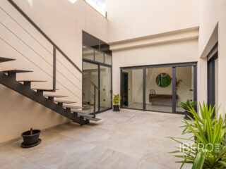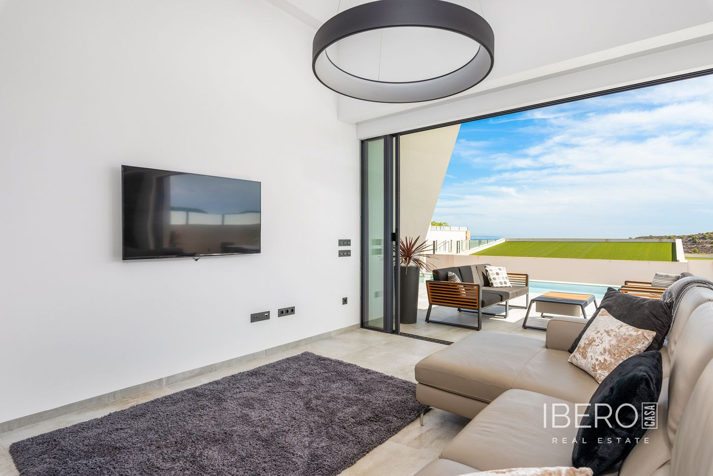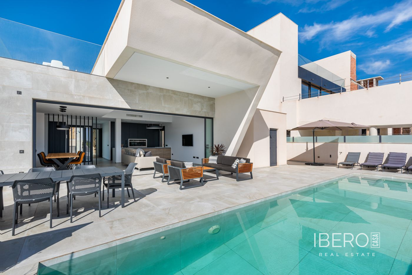 Luxusní vila s 5 ložnicemi a 6 koupelnami s výhledem v Ciudad Quesada. Krásná luxusní vila s celkovou obytnou plochou 333 m2 rozdělenou na dvě úrovně. Skládá se z celkem 5 dvoulůžkových ložnic, z nichž všechny mají vlastní koupelnu, další koupelny a toalety pro hosty. Hlavní patro se skládá ze dvou ložnic s koupelnami, toalety pro hosty a krásné otevřené kuchyně, obývacího pokoje a jídelny. V obývací části máte k dispozici velké posuvné dveře, které se zcela otevírají a poskytují skvělý prvek vnitřního / venkovního bydlení. Spodní úroveň se skládá ze tří ložnic s en-suite koupelnami, kuchyně a technické místnosti, velkého obývacího pokoje, koupelny, dvou úložných místností. Pokoje v této úrovni mají přístup na krásnou terasu. Z obývacího pokoje na této úrovni je přímý přístup do garáže a technické místnosti. Vila je vybavena centrální klimatizací (teplá/studená), podlahovým vytápěním v koupelnách, dvojitými okny a bezpečnostními dveřmi. Venkovní prostorVila stojí na krásném rohovém pozemku o rozloze 462 m2. Bazénová část je orientována na východ, což umožňuje úžasný výhled do okolí a na moře. Kolem bazénu máte k dispozici krásnou dlážděnou plochu s prostorem pro několik venkovních posezení a lehátek. Z prostoru bazénu vedou venkovní schody na velkou střešní terasu. Zde máte jednu část, která je pokryta dlaždicemi, a druhou část s umělou trávou, obě s velkým prostorem pro venkovní zábavu a s úžasným výhledem. U vchodu do domu máte další krásnou vydlážděnou zahradní plochu, která směřuje na západ. Tato oblast je ideální pro vychutnávání odpoledního/večerního slunce. Na spodní úrovni najdete velkou dlážděnou terasu s umělou vertikální zahradou. Na tuto terasu je přístup ze zahrady po venkovních schodech a také z obývacího pokoje a 2 ložnic ve spodní úrovni.