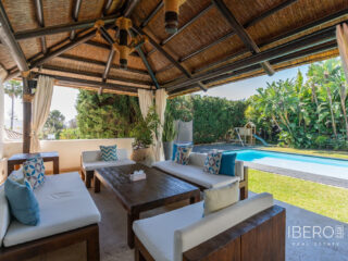 VILA U PLÁŽE S VYHŘÍVANÝM BAZÉNEM Vynikající vila jen 300 metrů od pláže, která se nachází v oblasti Nové zlaté míle (Estepona), konkrétně v oblasti Costalita, vedle plážového klubu Villa Padierna, v blízkosti všech druhů služeb, jako jsou restaurace, školy , supermarkety, několik nejlepších golfových hřišť (Los Flamingos, Atalaya, El Paraiso, Los Arqueros, Guadalmina... atd.) jen pár minut od Guadalminy, San Pedra a Puerto Banus. Nemovitost byla před několika lety kompletně zrekonstruována, rozdělena do dvou výškových úrovní, má celkem pět ložnic. Hlavní ložnice vyniká velkou rozlohou, vysokými stropy, velkou šatnou a proskleným sprchovým koutem. Dále má prostorný obývací pokoj s krbem vedle velké kuchyně a krytý vyhřívaný bazén. Zvenčí má nemovitost velký pozemek o rozloze téměř 1 000 m2 s velkým venkovním bazénem, zahradní plochou a parkovištěm pro tři auta. Ideální nemovitost pro klienty, kteří si chtějí užívat velký rodinný dům u pláže pár minut od všech služeb.
