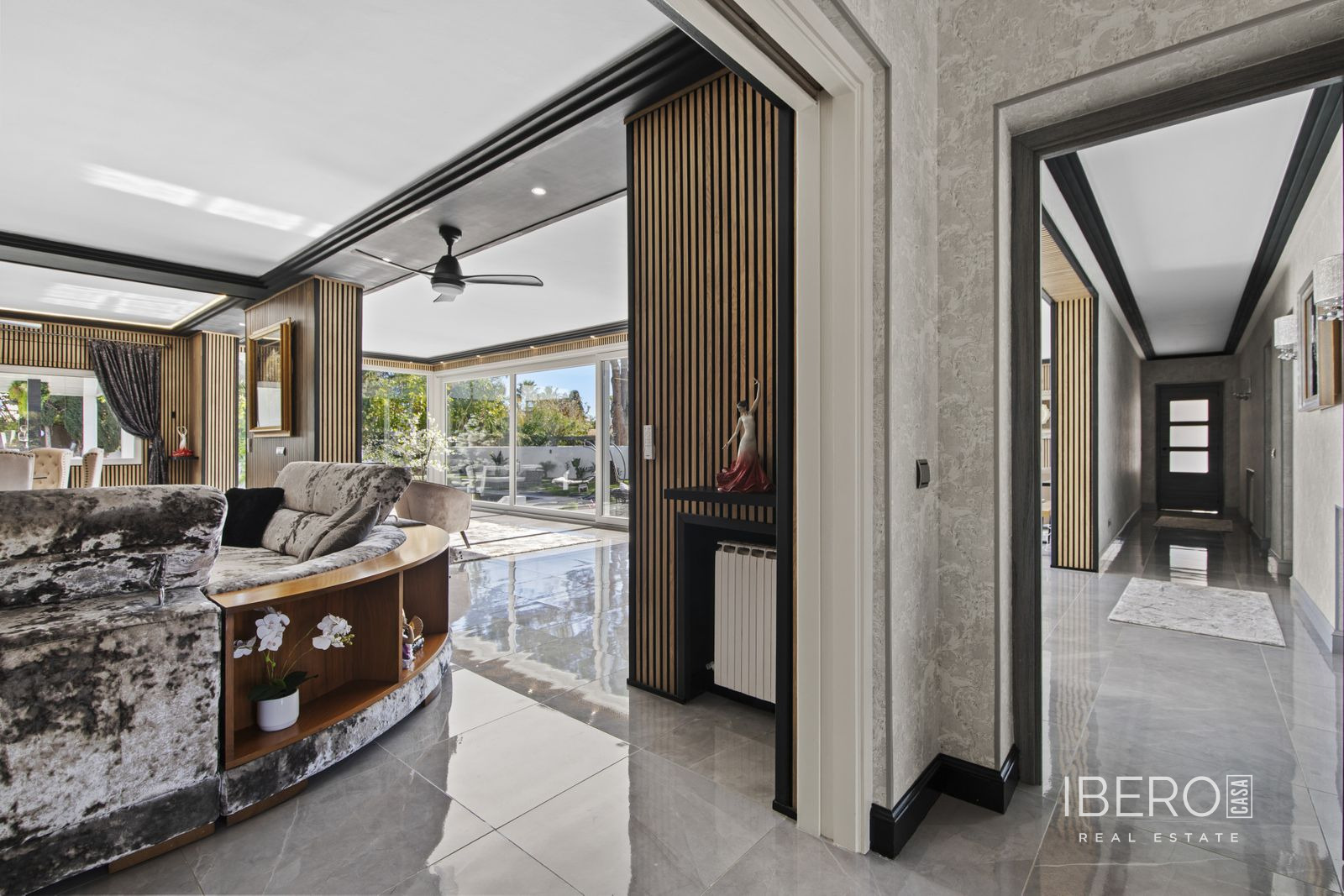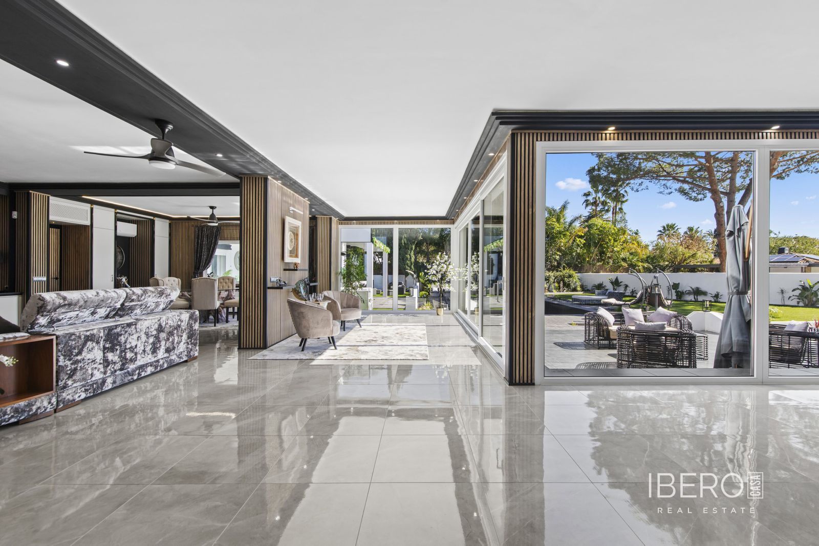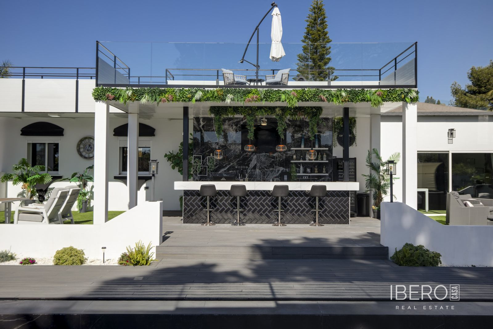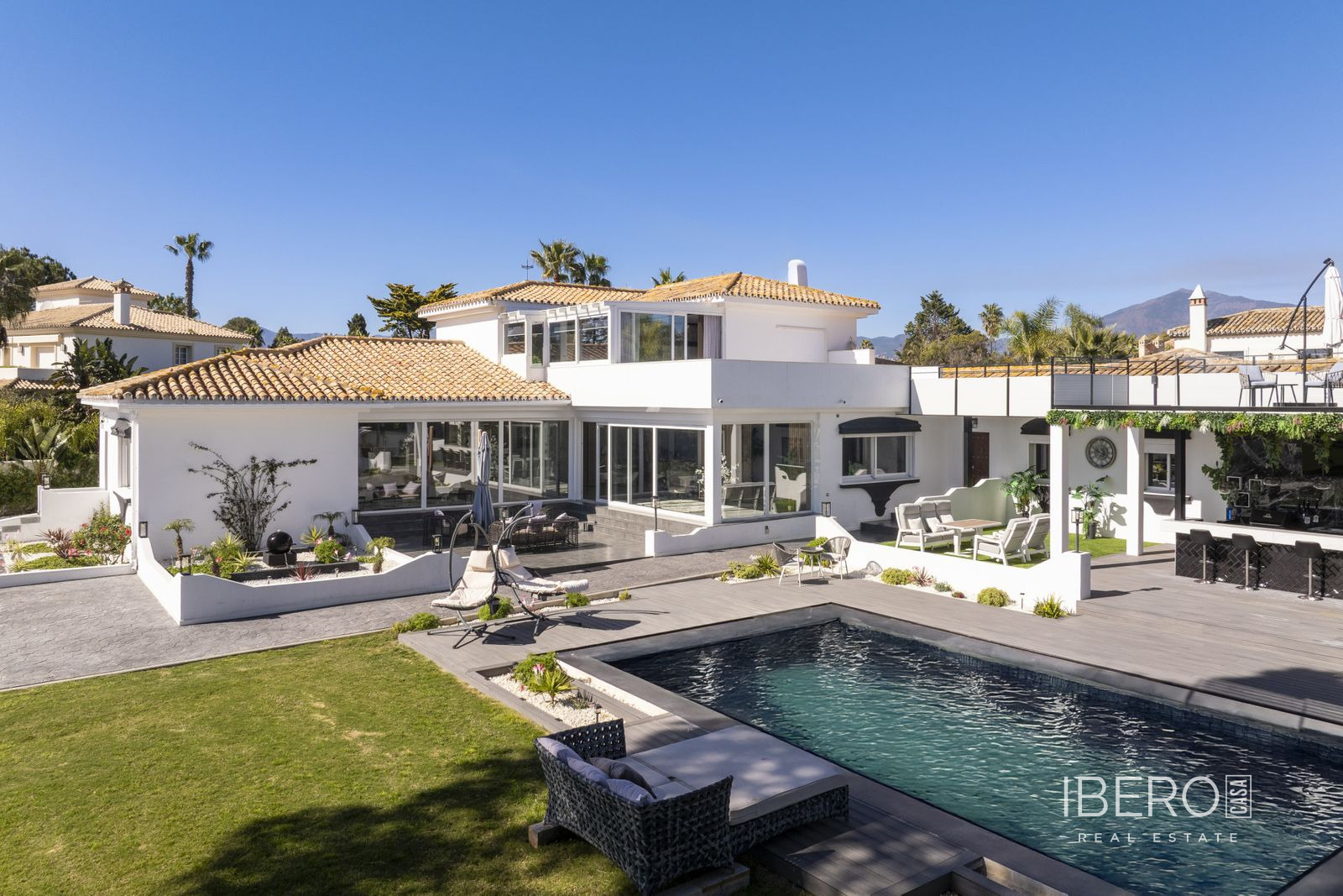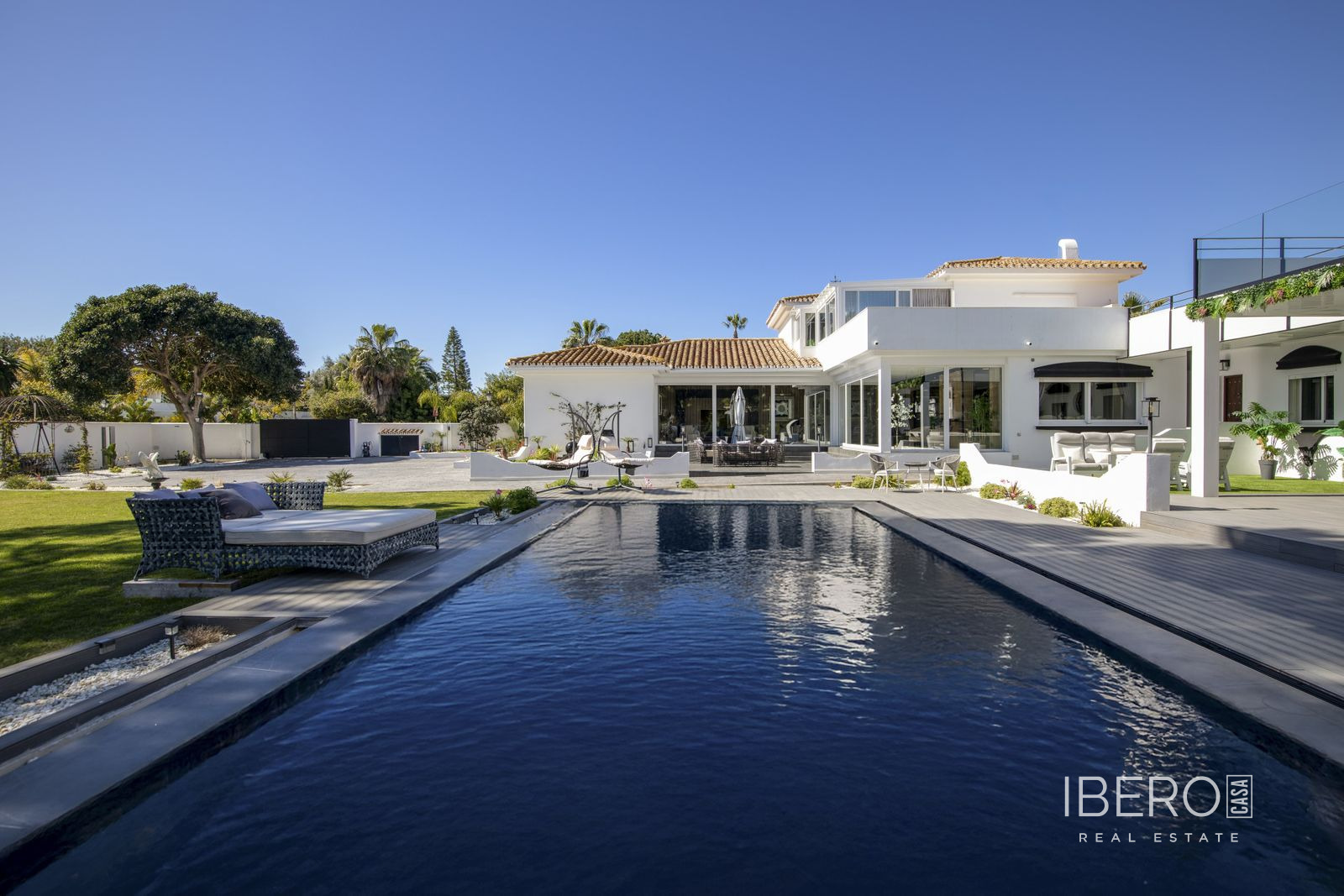 Tato úžasná nedávno zrekonstruovaná vila se nachází v prestižní oblasti Guadalmina Baja - Casasola, jen kousek od pláže, na mimořádně velkém soukromém pozemku, který nabízí prostor, soukromí a bezproblémové bydlení na pobřeží. Vila je navržena s ohledem na pohodlí a flexibilitu a nabízí pět prostorných ložnic, čtyři koupelny a toaletu pro hosty. Čtyři z ložnic se nacházejí v přízemí a všechny mají vlastní koupelnu, takže toto uspořádání je ideální pro rodinné bydlení. Působivé hlavní apartmá zabírá horní úroveň a nabízí velkorysou ložnici, rozsáhlou koupelnu s oddělenou toaletou a soukromou terasu - dokonalé útočiště vhodné zejména pro rodiny se staršími dětmi, které hledají vlastní prostor. Kromě toho je výhodou vily zcela oddělený, samostatný apartmán, ideální pro bydlení personálu, širší rodiny nebo jako nezávislé apartmá pro hosty. Venkovní prostory jsou skutečně výjimečné. Vzrostlá zahrada inspirovaná zenovou architekturou vytváří klidné a soukromé útočiště s venkovním barem, grilem a několika odpočinkovými zónami určenými pro zábavu a relaxaci. Herna dodává další všestrannost pro rodinnou zábavu. K praktickým prvkům patří garáž pro nejméně dvě auta, velký přední dvůr s možností parkování až pěti dalších vozidel, solární panely, částečné podlahové vytápění a klimatizace v celém domě - zajišťující celoroční pohodlí a energetickou účinnost. Vzácná příležitost vlastnit prostornou vilu připravenou k nastěhování v jedné z nejvyhledávanějších plážových lokalit na pobřeží Costa del Sol.