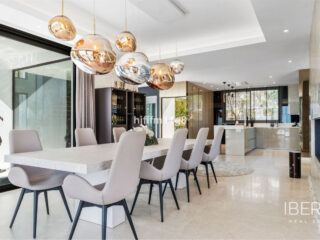 Objevte výjimečnou luxusní vilu na klíč k prodeji v prestižním golfovém resortu Los Flamingos, jedné z nejvyhledávanějších rezidenčních oblastí na pobřeží Costa del Sol, kde se nachází světoznámá Villa Padierna. Tato nemovitost v první linii nabízí nepřerušovaný panoramatický výhled na proslulé golfové hřiště Villa Padierna a kombinuje eleganci, soukromí a prvotřídní polohu v jedné z nejexkluzivnějších uzavřených komunit v Marbelle. Tato plně zařízená moderní vila je navržena na základě otevřeného obývacího prostoru se stoupajícími stropy, rafinovanou architekturou a sofistikovanou neutrální barevnou paletou, která umocňuje přirozené světlo a pocit prostoru v celém bytě. Nemovitost je připravena k nastěhování, prodává se na klíč se špičkovým designovým nábytkem, což umožňuje novým majitelům užívat si okamžitého pohodlí, stylu a luxusu bez dalších investic. Vila nabízí pět prostorných ložnic, z nichž každá má vlastní koupelnu, a dvě další toalety pro hosty. Rozsáhlá prosklená okna od podlahy ke stropu zaplavují interiéry přirozeným světlem a zároveň rámují nádherný výhled na golf a údolí. Bezproblémové propojení vnitřních a venkovních prostor vytváří světlou, vzdušnou atmosféru ideální pro každodenní středomořský život i elegantní zábavu. Všechna patra spojuje soukromý výtah a nemovitost je plně bezbariérová, což kombinuje sofistikovaný design s praktičností a přístupností. Hlavní obytný prostor se otevírá přímo na velkorysé terasy a nádherně řešené venkovní prostory. Působivá venkovní kuchyně se špičkovými spotřebiči je dokonale umístěna hned vedle obývacího pokoje a vytváří výjimečný zábavní prostor pod širým nebem ideální pro celoroční stolování. V exteriéru se nachází také několik odpočinkových míst, terasy na opalování a stylový prostor pro grilování, to vše s výhledem na udržované fairwaye golfového hřiště Villa Padierna. Plně vybavená moderní kuchyně uvnitř vily nabízí prvotřídní spotřebiče, elegantní skříňky a prostorné jídelní prostory, takže je ideální pro hostování rodiny a hostů. Výhodou domu jsou také rozlehlé vnitřní salonky, v nichž se snoubí pohodlí s moderním luxusem. Vzácnou zajímavostí této nemovitosti je již vydané stavební povolení spolu s architektonickými výkresy pro velkolepou garáž pro 12 aut - vynikající příležitost pro sběratele aut nebo majitele, kteří hledají další úložné prostory a prostory ve stylu výstavní síně. Vila se nachází v klidném prostředí údolí, ale jen pár minut od pláží, mezinárodních škol, luxusních obchodů a vynikajícího stravování, a zároveň se těší blízkosti lesku Puerto Banús, známého svými značkovými butiky, mezinárodními restauracemi a ikonickým životním stylem v přístavu. Obyvatelé Los Flamingos mohou také využívat 24hodinovou ostrahu a blízký přístup k hotelu Villa Padierna Palace Hotel & Golf Resort, lázeňským zařízením a mistrovským golfovým hřištím. Jedná se o jedinečnou příležitost ke koupi plně zařízené golfové vily v první linii v Los Flamingos v Marbelle, v prestižní oblasti resortu Villa Padierna - ideální jako trvalé bydlení, luxusní rekreační dům nebo špičková investiční nemovitost na pobřeží Costa del Sol. POZNÁMKA: - Stavební povolení se schválenými výkresy pro garáž pro 12 aut. - Venkovní kuchyně se špičkovými spotřebiči umístěná přímo před obývacím pokojem - Plně zařízený a připravený na klíč - Golf v první linii s panoramatickým výhledem na Villa Padierna - Výtah do všech pater a bezbariérový design - Podlahové vytápění v celém objektu (kromě suterénu) - Velká prádelna se spotřebiči Miele - Kinosál - Kulečníkový stůl - Stolní tenis - Elektrické šipky - Vinný sklípek