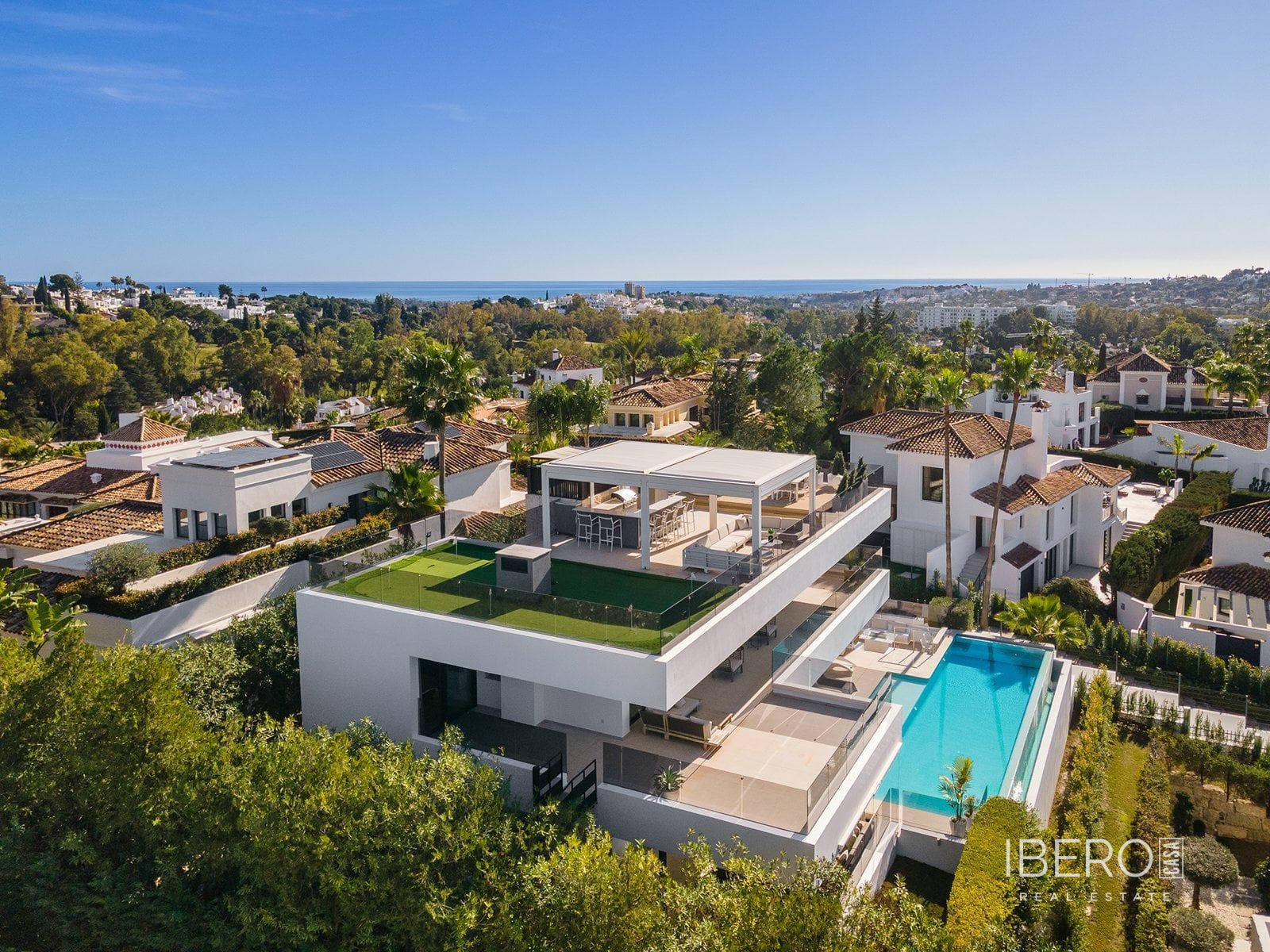 Zastupováno výhradně naší agenturou. Vítejte v této sofistikované vile na ulici Auriga s příjemným výhledem na golfové hřiště a moře, která je navržena tak, abyste si mohli vychutnat pečlivě vytvořené a funkční obytné prostředí. Nemovitost prošla kompletní rekonstrukcí a nabízí pět ložnic, prostorné a dobře rozvržené prostory, které se přizpůsobí jak primárnímu bydlení, tak druhému domovu. Materiály použité při renovaci splňují vysoce kvalitní standardy a zajišťují odolnost a moderní design, aniž by to bylo na úkor pohodlí. Interiér plynule navazuje na exteriér a podporuje přirozené světlo a pocit prostornosti ve všech místnostech. Venku se nachází vyhřívaný bazén, který lze využívat po většinu roku, a různé prostory určené k relaxaci a společenskému setkávání. Sluneční terasa v horním patře zahrnuje velkou pergolu, venkovní kuchyň s grilem a prostor pro volný čas s minigolfem, což vytváří všestranné prostředí pro rodinná setkání nebo setkání s přáteli v uvolněném a praktickém prostředí. Ulice Auriga se nachází v jedné z nejzavedenějších rezidenčních oblastí Nuevy Andalusie, která je známá svou blízkostí golfových hřišť, základních služeb a dobrého spojení. Z této lokality se snadno dostanete do Puerto Banús, na pláže, do mezinárodních škol a k pestré gastronomické nabídce, což z této oblasti činí vysoce ceněnou volbu pro ty, kteří hledají kvalitu života a pohodlí na pobřeží Costa del Sol.