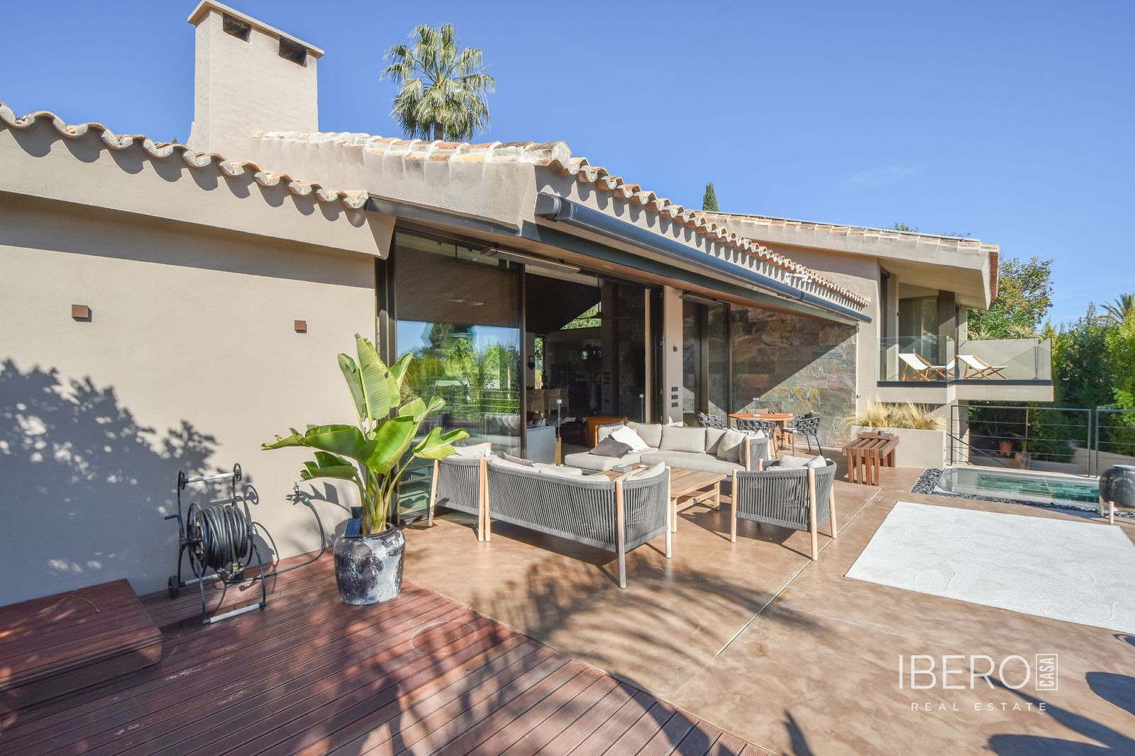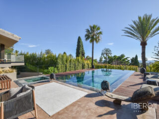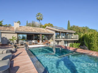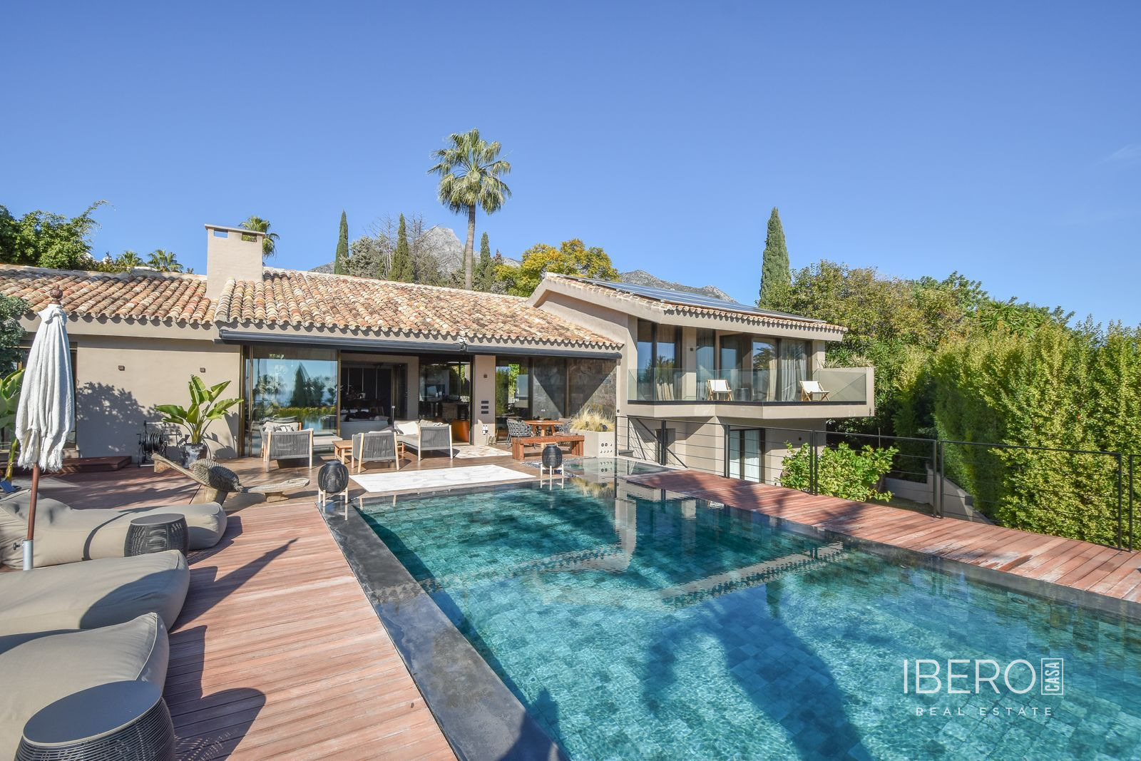 Vítejte v luxusním bydlení v prestižní La Capellania, v Marbella Hill Club! Tato nádherná vila nabízí sofistikovanost a klid a může se pochlubit 5 ložnicemi a 4 koupelnami v pečlivě navržených interiérech. Prostorná dispozice poskytuje hojnost přirozeného světla a vytváří v celém domě příjemnou atmosféru. Vychutnejte si venkovní bydlení s vlastním bazénem, kde se můžete vyhřívat na středomořském slunci nebo relaxovat s rodinou a přáteli. Vychutnejte si úchvatný panoramatický výhled na šumící moře, které je stálou kulisou krásy Marbelly. Součástí této exkluzivní nemovitosti je také praktická garáž, která zajistí bezpečné parkování pro vaše vozidla. Každý detail byl pečlivě vybrán tak, aby nabízel životní styl plný elegance a pohodlí. Objevte ztělesnění pobřežního bydlení v této pozoruhodné vile.