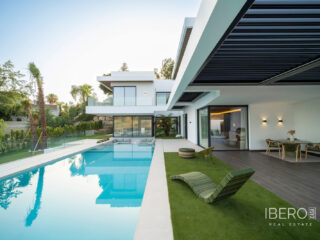 Nový vývoj: Ceny od 7 200 000 € do 7 200 000 €. [Ložnice: 6] [Koupelny: 9] [Zastavěná plocha: 1182 m2]. Tato vila je příležitostí, která se naskytne jednou za milion let, je připravena k nastěhování a má perfektní polohu v El Paraíso Alto v Esteponě. Je navržena jako moderní mistrovské dílo, spojuje eleganci s funkčností a nabízí prvotřídní povrchové úpravy na každém kroku. Rozkládá se na 4 podlažích nádherně navrženého obytného prostoru na pozemku o rozloze 1 283 m². Rozsáhlé obytné prostory s otevřeným půdorysem plynule navazují na skleněné panely od podlahy ke stropu, zatímco nejmodernější kuchyně se špičkovými spotřebiči a elegantním designem dodává každodennímu bydlení pocit výjimečnosti. Díky šesti velkorysým ložnicím s vlastním příslušenstvím a celkem devíti koupelnám nabízí značný prostor, soukromí a pohodlí pro velké rodiny nebo časté zábavy. Když vyjdete ven, přivítá vás upravená zahrada a rozlehlé terasy ideální pro pohodové lenošení nebo pořádání hostin. Hlavní hvězdou je nekonečný bazén s kaskádovitým vodotryskem. Venku najdete také plně vybavenou kuchyň pod širým nebem, kde si můžete vychutnat stolování pod hvězdami. Na terase a balkoně je dostatek místa, abyste se mohli kochat panoramatickým výhledem. Součástí je soukromá garáž a velkorysé parkoviště. Pozemek kombinuje moderní terénní úpravy se středomořskou atmosférou, což zajišťuje klidné prostředí.