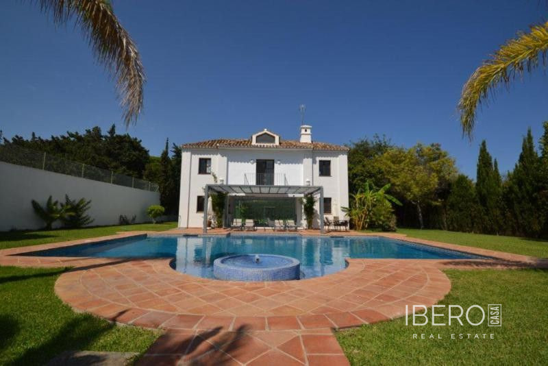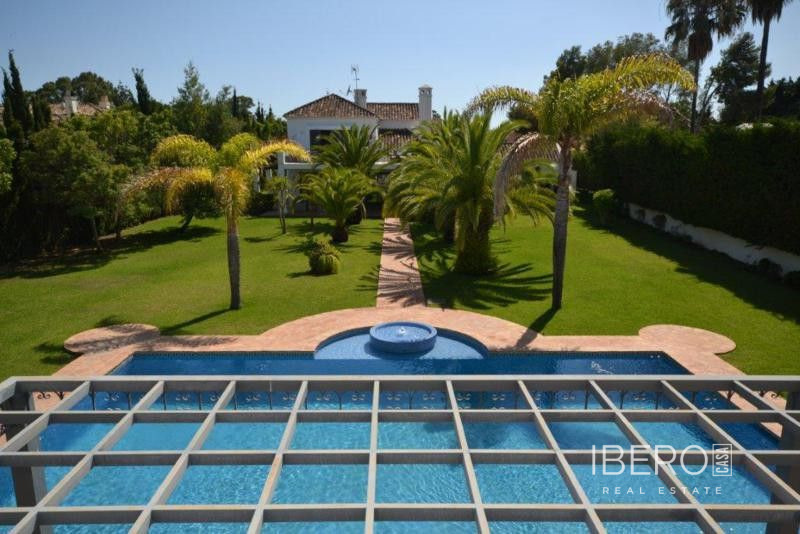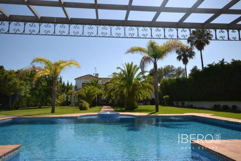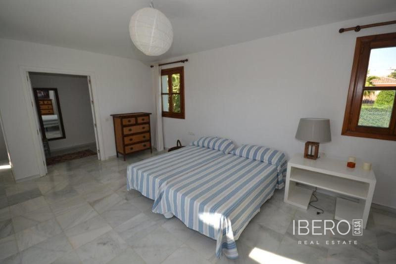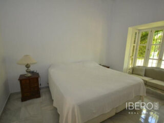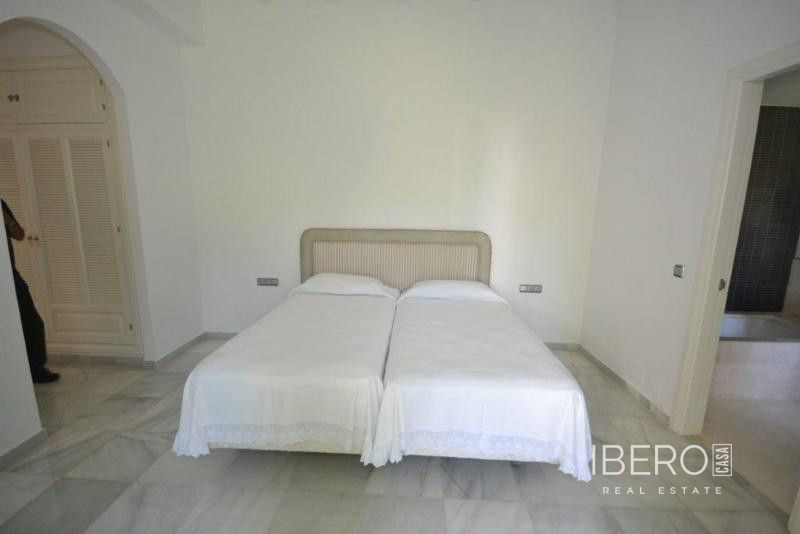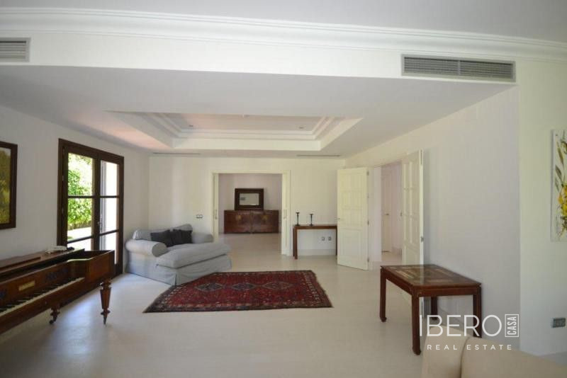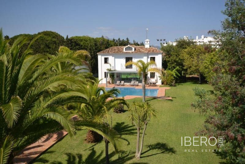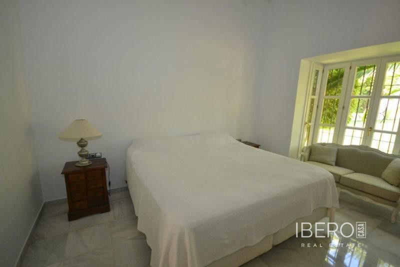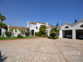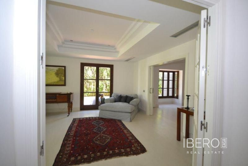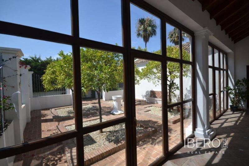 Krásná vila ve stylu cortijo v prestižním golfovém areálu Guadalmina Baja, v pěší vzdálenosti od pláže a v blízkosti SPA hotelu, mezinárodních škol a obchodního centra Guadalminy s obchody, bary a restauracemi. Tento dům v andaluském stylu se skládá z hlavního domu, domu s bazénem a soukromého padelového tenisového kurtu. Dům nabízí krásný vstupní prostor se španělskou terasou s pomerančovníky obklopujícími fontánu blížící se k hlavnímu domu, který se skládá ze vstupní haly se schodištěm vedoucím do horního patra, pokračujícím směrem k obývacímu pokoji s krbem, vybavené kuchyně s pracovním ostrůvkem po pravé straně s jídelnou, přilehlou prádelnou a ubytováním pro personál. Z obývacího pokoje je vstup na krytou terasu a do krásné zahrady. Dvě dvoulůžkové ložnice s vlastním sociálním zařízením a další obývací pokoj s krbem se nacházejí po levé straně vstupního prostoru, rovněž se vstupem na terasu a zahradu. V patře je hlavní apartmá se šatnou, koupelnou s vanou a sprchovým koutem a soukromou terasou s výhledem na bazén a zahradu a další ložnice s koupelnou a toaletou pro hosty. Dům doplňuje dvojgaráž. K dispozici je vzrostlá zahrada s velkým bazénem a soukromým hřištěm na paddleboard. V domě pro hosty / u bazénu se nachází toaleta pro hosty, prostor pro grilování a sprcha a v horním patře apartmán pro hosty s obývacím pokojem/jídelnou, kuchyňským koutem a ložnicí.
