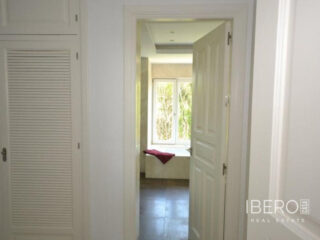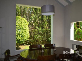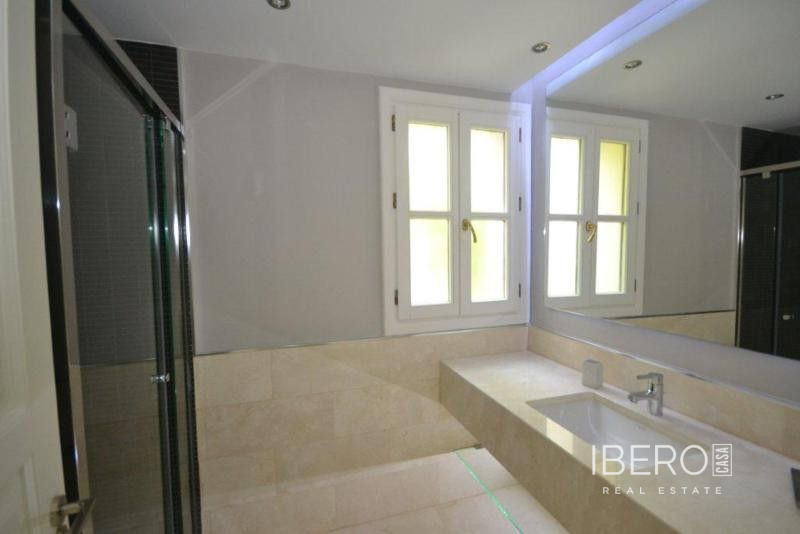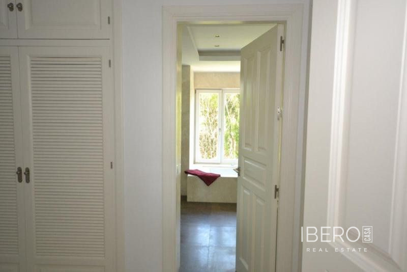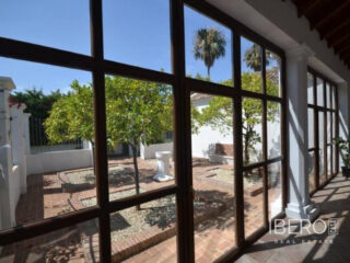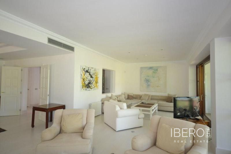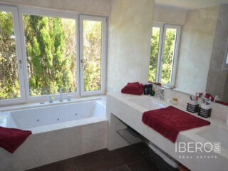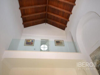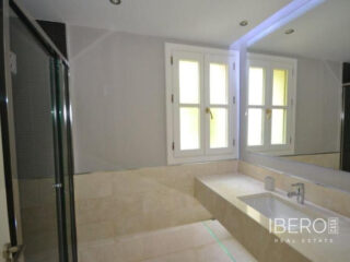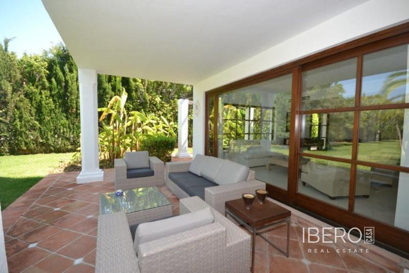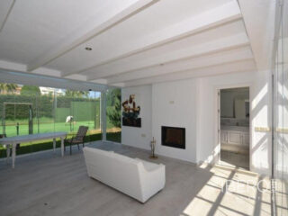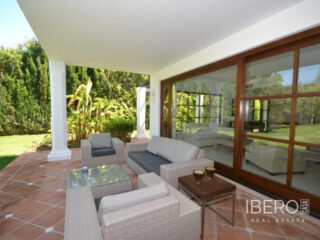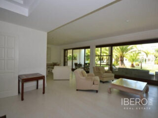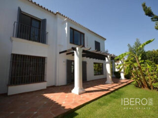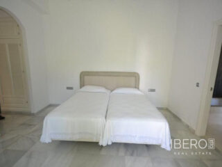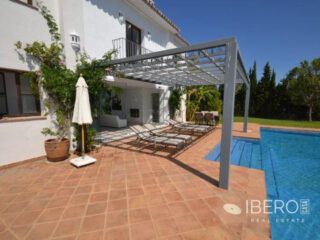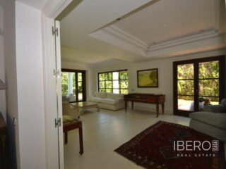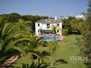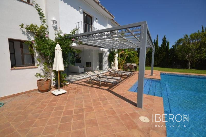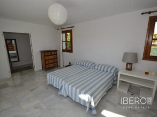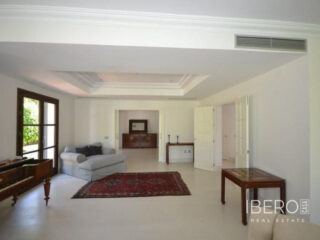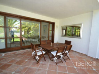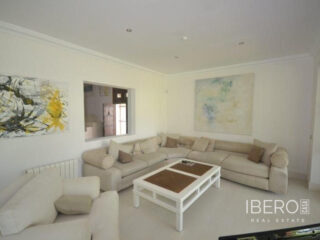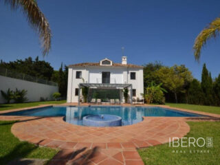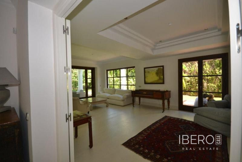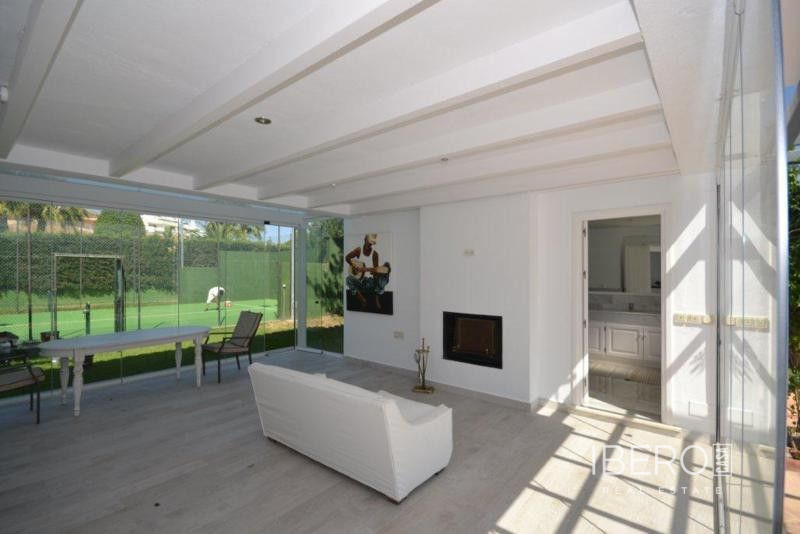Krásná vila ve stylu cortijo v prestižním golfovém areálu Guadalmina Baja, v pěší vzdálenosti od pláže a v blízkosti SPA hotelu, mezinárodních škol a obchodního centra Guadalminy s obchody, bary a restauracemi. Tento dům v andaluském stylu se skládá z hlavního domu, domu s bazénem a soukromého padelového tenisového kurtu. Dům nabízí krásný vstupní prostor se španělskou terasou s pomerančovníky obklopujícími fontánu blížící se k hlavnímu domu, který se skládá ze vstupní haly se schodištěm vedoucím do horního patra, pokračujícím směrem k obývacímu pokoji s krbem, vybavené kuchyně s pracovním ostrůvkem po pravé straně s jídelnou, přilehlou prádelnou a ubytováním pro personál. Z obývacího pokoje je vstup na krytou terasu a do krásné zahrady. Dvě dvoulůžkové ložnice s vlastním sociálním zařízením a další obývací pokoj s krbem se nacházejí po levé straně vstupního prostoru, rovněž se vstupem na terasu a zahradu. V patře je hlavní apartmá se šatnou, koupelnou s vanou a sprchovým koutem a soukromou terasou s výhledem na bazén a zahradu a další ložnice s koupelnou a toaletou pro hosty. Dům doplňuje dvojgaráž. K dispozici je vzrostlá zahrada s velkým bazénem a soukromým hřištěm na paddleboard. V domě pro hosty / u bazénu se nachází toaleta pro hosty, prostor pro grilování a sprcha a v horním patře apartmán pro hosty s obývacím pokojem/jídelnou, kuchyňským koutem a ložnicí.