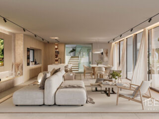 Tato výjimečná nemovitost se nachází na samém vrcholu Alcaidesy a nabízí 180stupňový výhled na Středozemní moře, golfové hřiště a ikonickou Gibraltarskou skálu. Výstavba byla zahájena v květnu a dokončení je naplánováno na konec roku 2026, což z ní činí vzácnou příležitost pořídit si zcela nový luxusní dům v jednom z nejprivilegovanějších prostředí na pobřeží Costa del Sol. Rezidence se staví podle nejvyšších standardů s velkoformátovými obklady Porcelanosa v celém objektu, italskými skříněmi Novamobili a elegantními interiérovými dveřmi Albed. Kuchyně SieMatic bude plně vybavena prémiovými spotřebiči od společností Gaggenau, Liebherr a Technic, zatímco koupelny budou mít vynikající vybavení od společností Villeroy & Boch, Duravit, Bernstein a Hansgrohe. Komfort a design jdou ruku v ruce, v ložnicích jsou dřevěné podlahy, v obytných prostorách podlahové vytápění a systém vytápění a chlazení Daikin. Rozsáhlá okna a posuvné dveře Cortizo vytvářejí bezproblémové bydlení v interiéru a exteriéru. K vybavení životního stylu patří vířivka Astralpool, soukromá posilovna, upravené zahrady s automatickým zavlažováním a venkovní osvětlení zvýrazňující fasádu i zelené plochy. Nemovitost je zabezpečena automatickými vjezdovými a garážovými vraty, kamennými zdmi obklopujícími pozemek a předinstalovanými systémy požární ochrany, kamerového systému, závěsů a žaluzií. Udržitelnost je zajištěna 22 solárními panely (11 kW). Velkorysé terasy, odpočinkové zóny a úchvatný výhled dotvářejí tento jedinečný projekt - architektonickou výpověď, která v sobě spojuje špičkový design, eleganci a jedinečnou polohu.