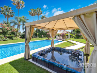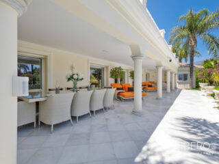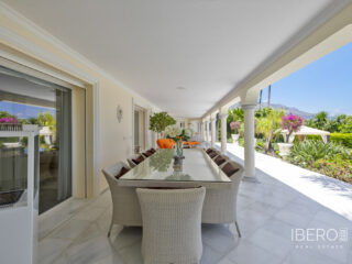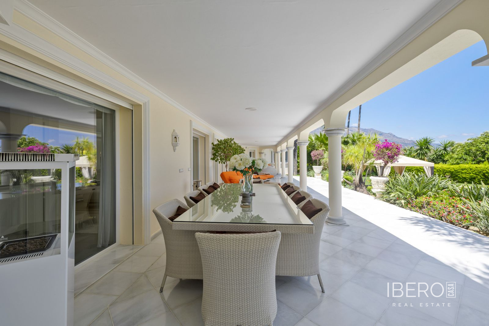 Skvělá, nedávno zrekonstruovaná vila s dokonalým spojením moderního designu a andaluského stylu. Nachází se ve vyhledávané rezidenční čtvrti La Cerquilla. Orientovaná na jih s výhledem na La Concha. Soukromá a klidná, v blízkosti veškerá občanská vybavenost a golfové kluby Las Brisas a Los Naranjos. Hlavní patro: Vstupní chodba, velký obývací prostor s krbem a vysokými stropy, jídelní kout s otevřenou plně vybavenou kuchyní se spotřebiči Siemens a Neff a zábavním barem. Čtyři ložnice pro hosty s vlastní koupelnou, kancelář, toaleta pro hosty, prádelna. Z obytných prostor přístup na krytou a otevřenou terasu do zahrady a k bazénu. První patro: Hlavní ložnice s šatnou a přímým vstupem na terasu. Spodní patro: balkon s terasou a terasou s výhledem na moře: Spodní patro: zábavní prostor, vinárna, kinosál, posilovna, garáž pro 6 aut a sklad. Samostatný plně vybavený apartmán pro hosty nebo zaměstnance. Krásné vzrostlé zahrady, venkovní chill zóna s grilem a vyhřívaný bazén pěkné velikosti. Nábytek je k prodeji.