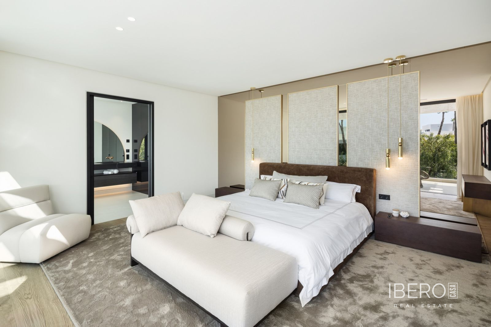 Tato luxusní vila se nachází v prestižní oblasti Atalaya de Rio Verde, Nueva Andalucia, Marbella a je ztělesněním elegance a moderního bydlení. Tato nemovitost s rozlehlou zastavěnou plochou 843 m², doplněnou terasou o rozloze 314 m² a zasazenou na velkorysém pozemku o rozloze 1 107 m² nabízí jedinečný životní styl. Vila se šesti prostornými ložnicemi, sedmi koupelnami a další toaletou pro hosty je navržena tak, aby poskytovala pohodlí i sofistikovanost. Interiér vily je důkazem pečlivého řemeslného zpracování a prvotřídních povrchových úprav. Plně vybavená kuchyň je vybavena nejmodernějšími spotřebiči, zatímco mramorové podlahy a skleněné dveře umocňují pocit luxusu v celém interiéru. Nemovitost se dodává kompletně zařízená, což zajišťuje bezproblémový přechod pro nové majitele. Mezi další prvky patří podlahové vytápění ve vybraných prostorách, klimatizace a elektrické žaluzie, které přispívají k pohodlnému a modernímu bydlení. Vila se může pochlubit také suterénem, hernou a kuchyňským koutem, které uspokojí nejrůznější životní potřeby. Stejně působivé je i venkovní bydlení se soukromým bazénem, krásně upravenou zahradou a několika terasami s nádherným výhledem do krajiny, na hory a částečně na moře. Solárium a prostor pro grilování poskytují dokonalý prostor pro zábavu nebo relaxaci pod středomořským sluncem. Pro milovníky wellness je vila vybavena posilovnou, saunou a vířivkou, což zajišťuje komplexní zážitek z bydlení. Objekt je vybaven moderním zabezpečovacím systémem a internetovým připojením, což zajišťuje bezpečnost a pohodlí. Tato vila se nachází v blízkosti moře, golfových hřišť, centra města a přístavu a nabízí klid i dostupnost. Její vynikající stav a zcela nová klasifikace z ní činí vzácný nález v jedné z nejvyhledávanějších oblastí Marbelly. Díky občanské vybavenosti v okolí a funkcím, jako je šatna, satelitní TV a prádelna, je tato vila skutečným ztělesněním luxusního bydlení.