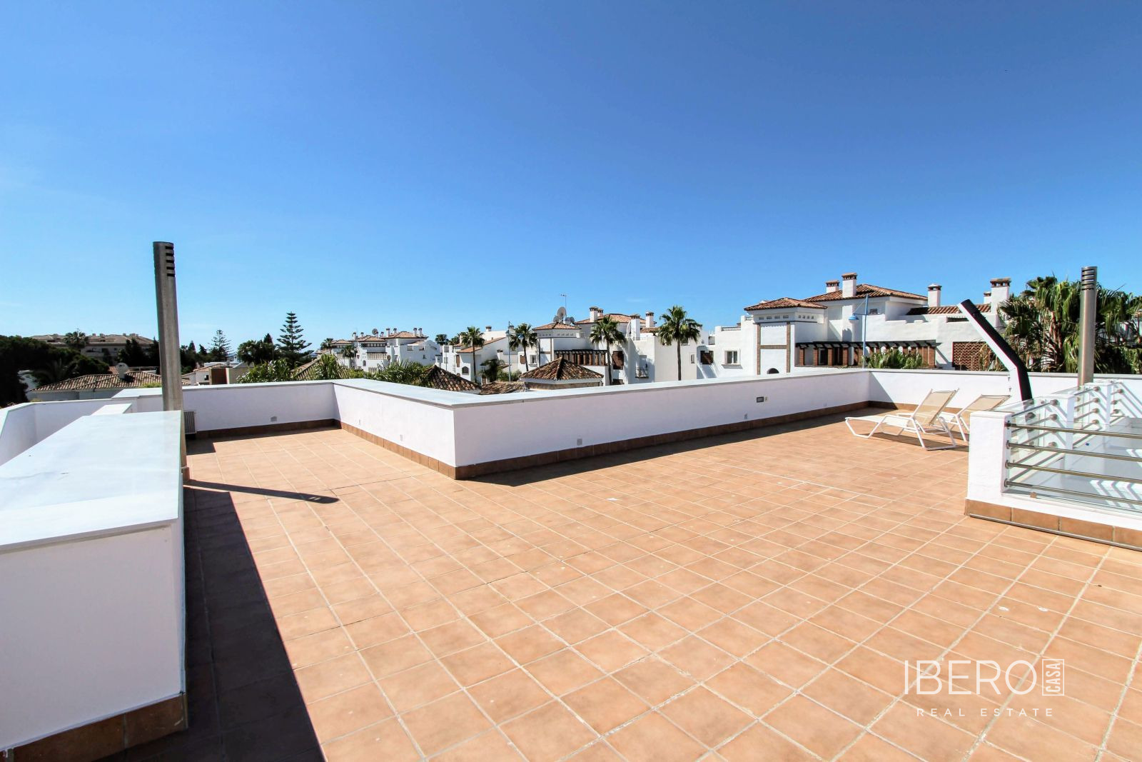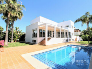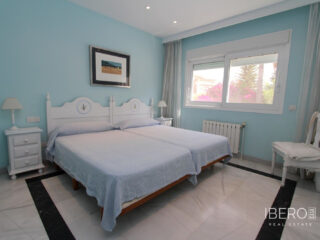 Prostorná vila u pláže v oblíbeném San Pedru, kousek západně od Marbelly a Puerto Banús, v pěší vzdálenosti od plážové promenády, obchodů a restaurací. Tento dům stojí v udržovaných zahradách s bazénem a nabízí dokonalou kombinaci vnitřních a venkovních prostor včetně fantastické střešní terasy o rozloze 120 m2 s panoramatickým výhledem. Na vstupním podlaží najdeme vstupní halu, obývací pokoj s krbem, jídelnu spojenou s velkou plně vybavenou kuchyní se snídaňovým koutem, prádelnu/správní místnost, toaletu pro hosty a ložnici pro hosty s vlastní koupelnou. Dále je zde velká krytá terasa s výhledem na bazén. V horním patře se nacházejí dvě apartmá pro hosty s terasami a hlavní apartmá se slunnou otevřenou terasou a vstupem na střešní terasu. Přirozeně osvětlený suterén nabízí hernu, další dvě ložnice (na lůžka), rodinnou koupelnu a velkou garáž, do které se vejdou 3-4 auta. K dispozici jsou také skladovací prostory a strojovny. Tato vila nabízí prostorné a příjemné prostředí s promyšlenou dispozicí, která maximálně využívá různé prostory domu. Poloha v blízkosti pláže a občanské vybavenosti San Pedra, stejně jako snadná dostupnost do Marbelly a Puerto Banús, z ní činí ideální volbu pro ty, kteří si chtějí užívat pohodový životní styl na pobřeží Costa del Sol.