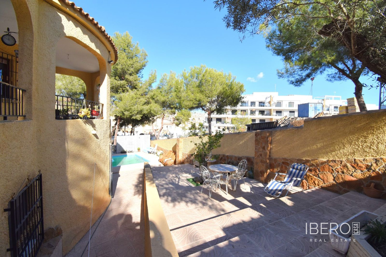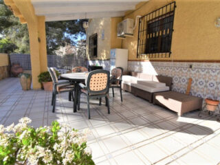 Tato východně orientovaná samostatně stojící vila se šesti ložnicemi v oblasti Las Filipinas, Villamartin; oblíbená rezidenční čtvrť jen pět minut chůze od kaváren, restaurací, malého obchodu; hlavní supermarket 2 minuty jízdy autem, spolu s obchodním centrem "La Fuente" a 2 golfovými hřišti; 10—15 minut na pobřeží, kde máte na výběr z pláží a bohaté občanské vybavenosti, včetně nákupního centra La Zenia Boulevard. Charakteristická vila na soukromém vzrostlém pozemku o rozloze 800 m2, která se skládá z: oblouková zastřešená terasa nabízí dostatek prostoru pro stolování, která se pak otevírá na velkou terasu, která je částečně zastřešená; vstup do nemovitosti do obloukové prostorné vstupní haly, která má schody vedoucí do prvního patra; obývací prostor s krbem a širokým obloukem vedoucím do dalšího obývacího/jídelního prostoru; vybavená kuchyň v americkém stylu; technická místnost; šatna; Spodní obytná část této vily má obývací/sedací část; čtyři dvoulůžkové ložnice, hlavní s posuvnými dveřmi do zahrady; jedna jednolůžková ložnice; dvě další koupelny; velká dvoulůžková ložnice s vlastní koupelnou v prvním patře. Vila je obklopena vzrostlým pozemkem, na kterém stojí, včetně soukromého bazénu 8x4 s množstvím teras kolem, spoustou vzrostlých vzrostlých stromů a příjezdovou cestou, grilem. Nemovitost také těží z velkého úložného prostoru v přízemí a ústředního topení. Opravdu skvělý rodinný dům.
