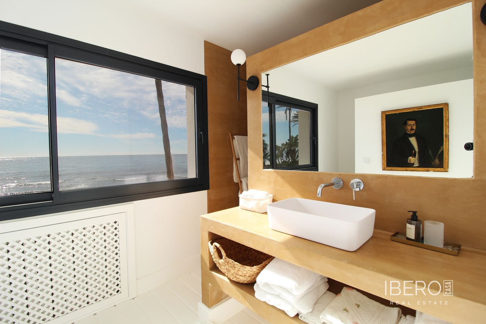 Výjimečná vila se nachází v první linii pláže ve velmi žádané a uzavřené komunitě Casasola, Guadalmina Baja. Tato nedávno zrekonstruovaná nemovitost orientovaná na jih má úchvatný panoramatický výhled na Středozemní moře s Afrikou i Gibraltarem v dálce. Nemovitost se nachází na pozemku o rozloze 2 300 m2 a má moderní i ibizský styl. Dům má rozumné rozložení, je postaven kolem dvou centrálních dvorů, které umožňují proudění světla po celé nemovitosti. Obývací pokoj je rozdělen na dvě samostatné části s útulným obývacím pokojem s krbem mimo hlavní část. Ta pak vede do jídelny, která má pohodlné posezení pro nejméně 10 hostů. Z obývacího pokoje i jídelny je přístup na obrovskou krytou terasu, která zase vede do rozlehlých zahrad a k bazénu. Úžasná kuchyň ve tvaru písmene "L" byla dobře promyšlena a obsahuje spotřebiče Siemens. U kuchyně je také samostatná prádelna. V přízemí nemovitosti se nachází šest apartmánů s ložnicemi, z nichž dvě mají přímý vstup do zahrad a k bazénu. Kromě toho jsou v zadní části nemovitosti dvě ložnice pro personál. Horní úroveň se skládá z hlavního apartmá, dvou koupelen, množství šatních skříní a solária, z něhož se můžete kochat výhledem a zvukem vln narážejících na pobřeží. Komunita má nepřetržitou ostrahu a nachází se jen kousek od San Pedra a Puerto Banus.
