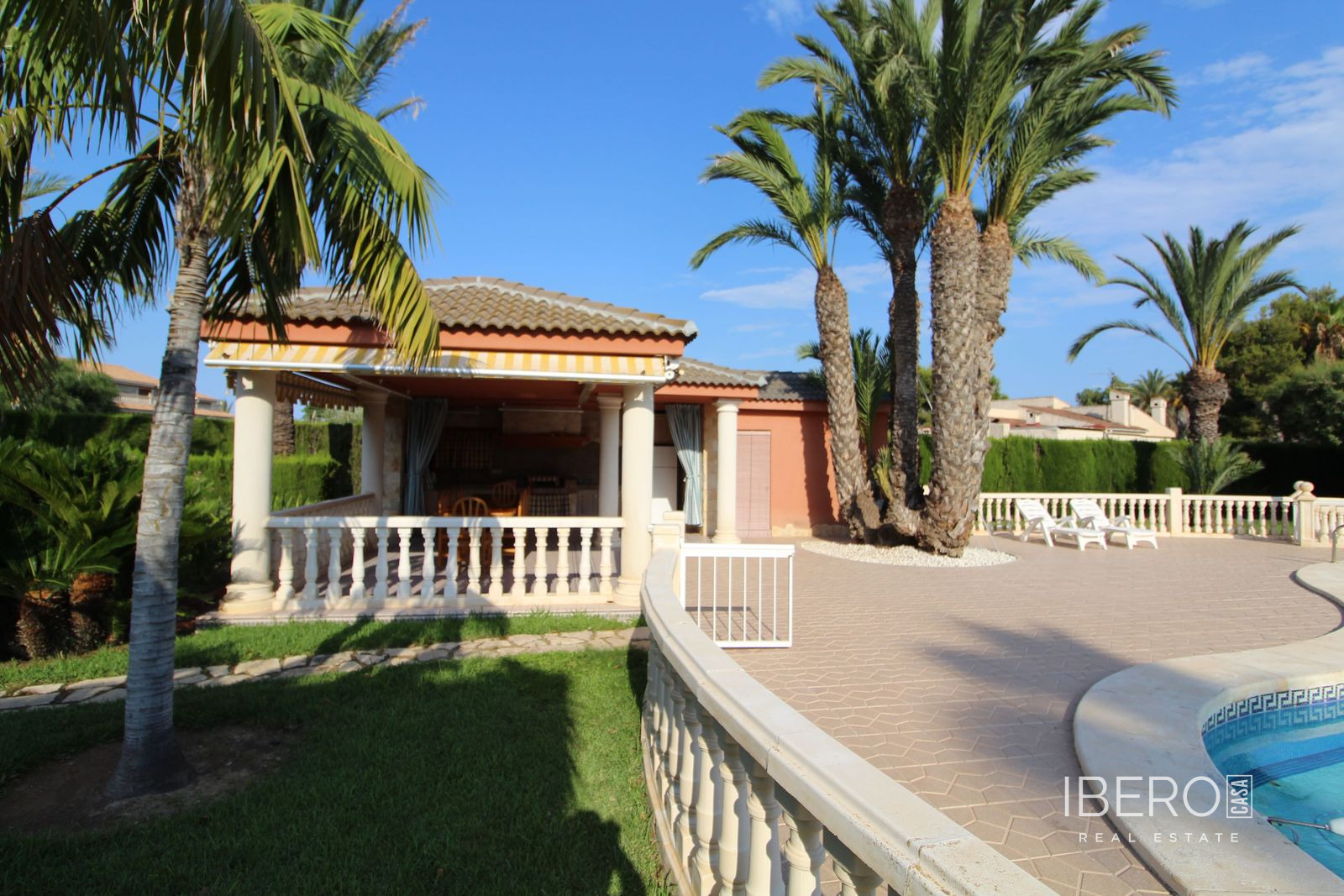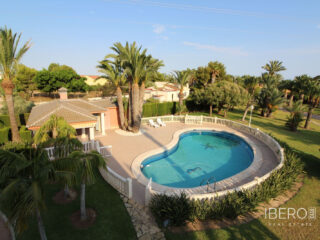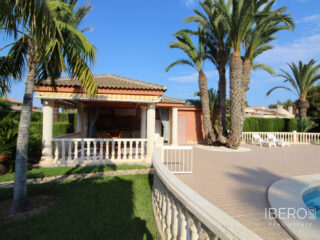 Tato nemovitost je báječná vila obklopená záviděníhodnými zahradami se středomořskými rostlinami a romantickými zákoutími o rozloze více než 7500 metrů čtverečních v zelené a přírodní oáze, která vám poskytne velký klid, jakého může dosáhnout jen málo míst. Pozemek je kompletně upraven bujnými palmami s velkou zvláštností, s nádherným přírodním trávníkem, jezírkem s přírodní vodou, které vyrovnává teplotu a vlhkost okolí, a ovocnými stromy Vyniká designem své konstrukce, kvalitami materiálů a elegancí povrchových úprav, stejně jako soukromím a klidem, které dům obklopují. Vybavení nemovitosti je velmi kompletní s impozantním a majestátním domem s krásným bazénem, velkým nezávislým grilem, který má šatnu s koupelnou a sprchou. Dům o rozloze 780 m2 má dvě podlaží propojená vnitřním schodištěm a je také podsklepený. V hlavním patře najdeme krásnou verandu, ideální pro snídani, elegantní jídelnu s nádherným výhledem do zahrady, obývací pokoj s knihovnou, pokoj využívaný jako obývací pokoj, 3 ložnice, 2 kuchyně, z nichž jedna má velmi prostornou jídelnu s krbem a prádelnu. V prvním patře najdeme obývací pokoj a velkou terasu s výhledem na bazén a zahradu, další obývací pokoj s jídelnou, 3 ložnice, z nichž jedna má přístup na velkou terasu, kde si můžete užívat západy slunce, 2 koupelny, kuchyň a prádelnu. A konečně v suterénu se nachází velký prostor využívaný jako sklad a garáž. Nemovitost má v okolí kvalitní obchodní, rekreační a sportovní služby, stejně jako napojení na důležité komunikační trasy s hlavními městy po silnici a s letištěm Alicante-Elche.